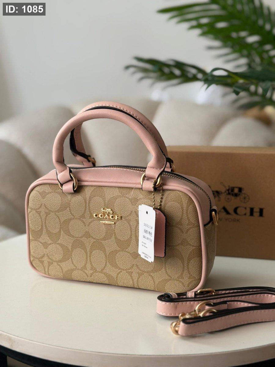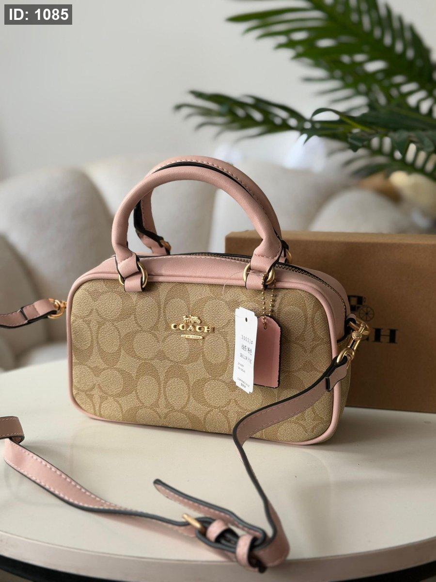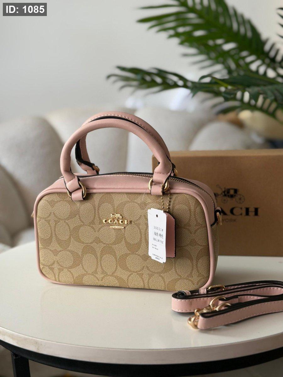 حقيبة كوتش لون بيج وزهري