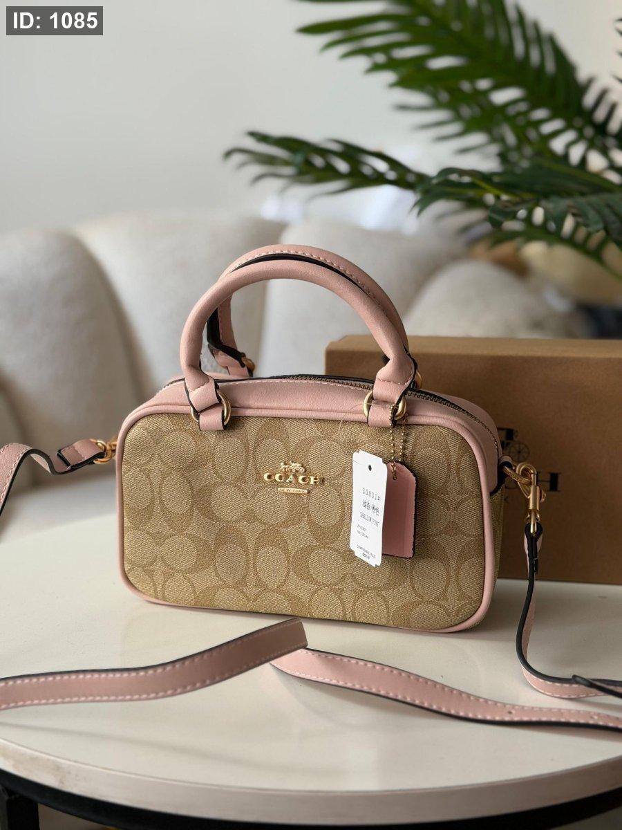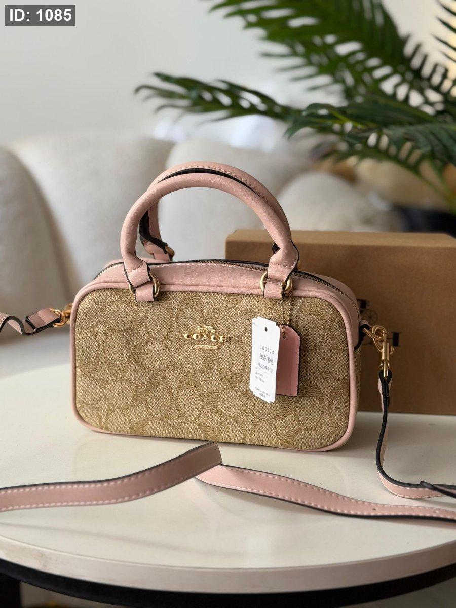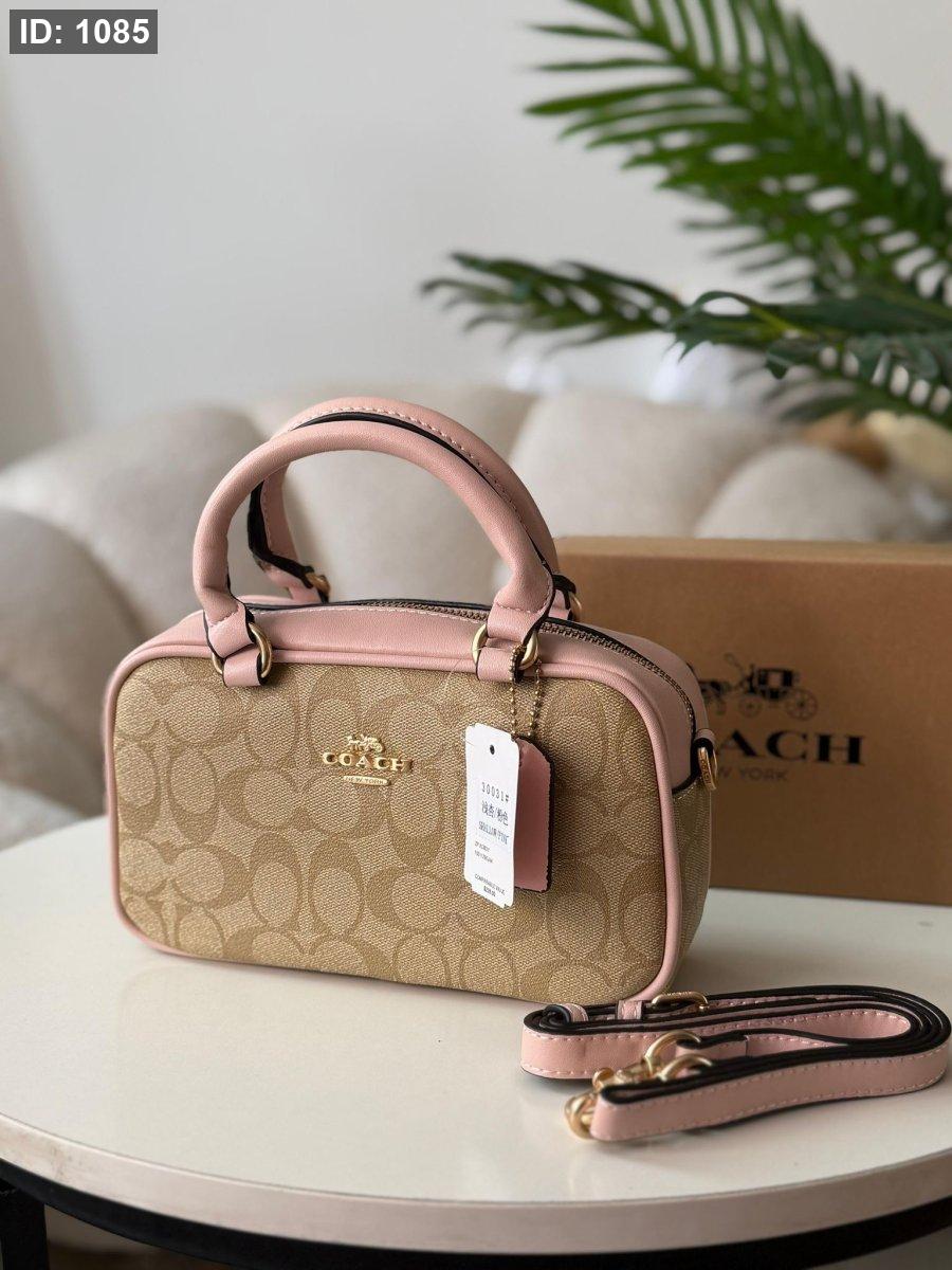 حقيبة كوتش لون بيج وزهري