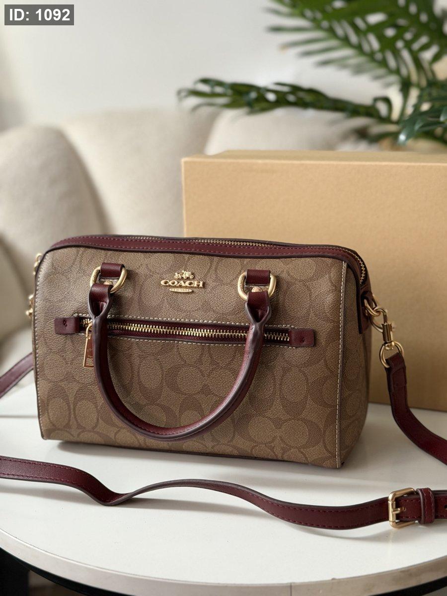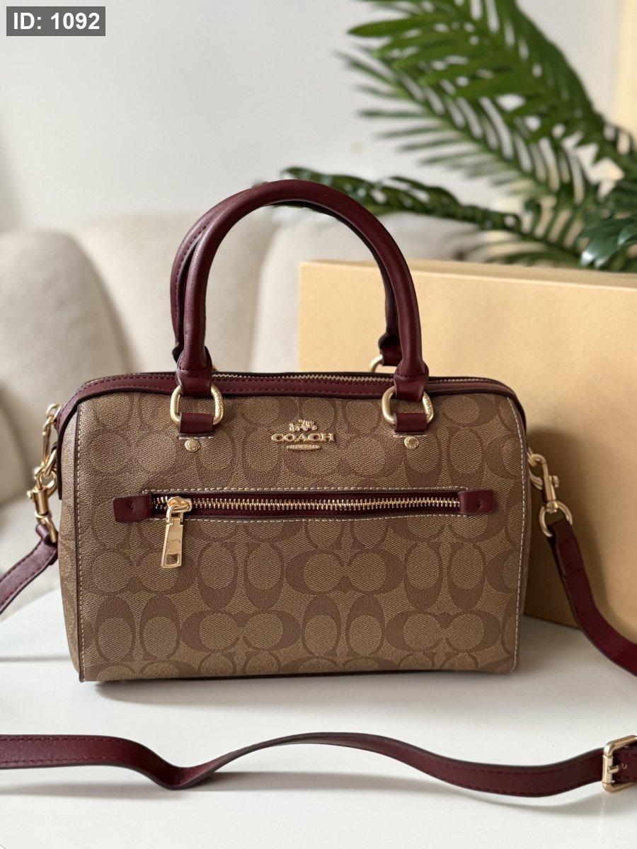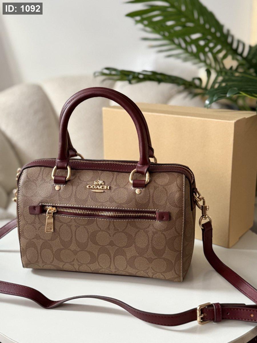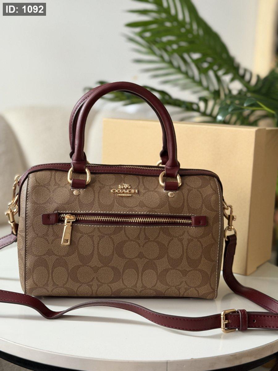 حقيبة كوتش لون برغندي وبيج حجم كبير