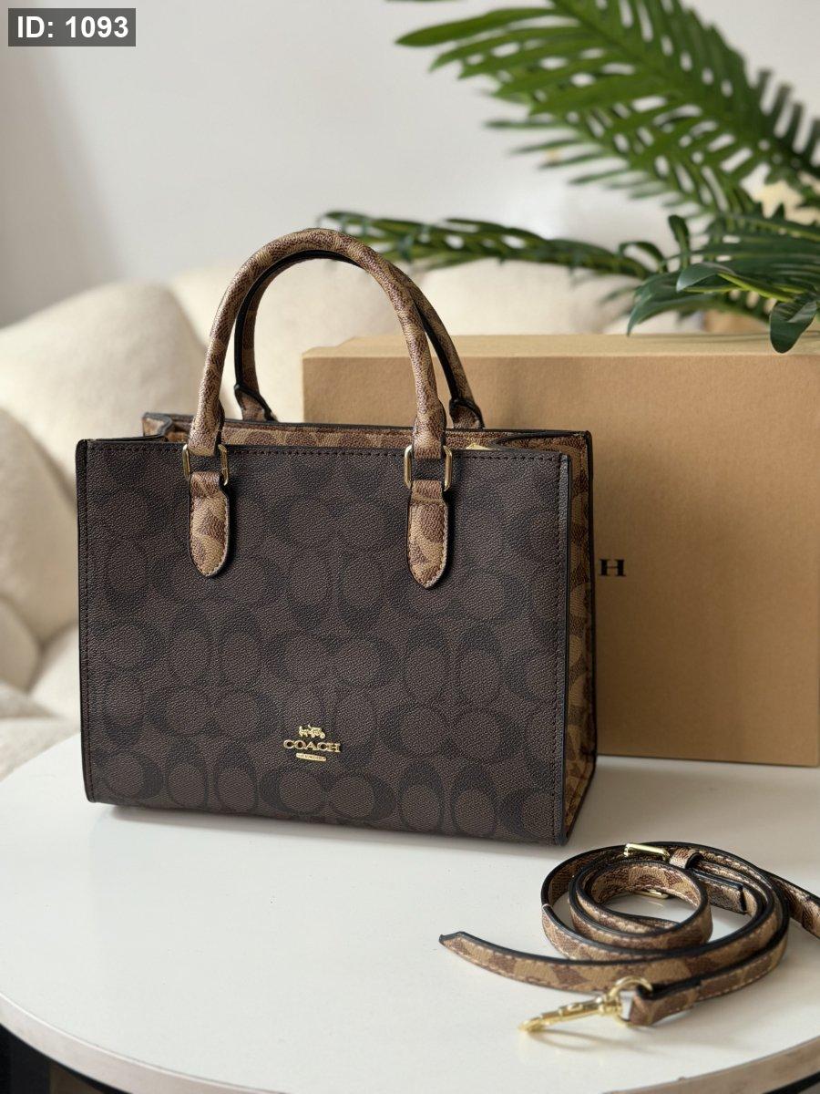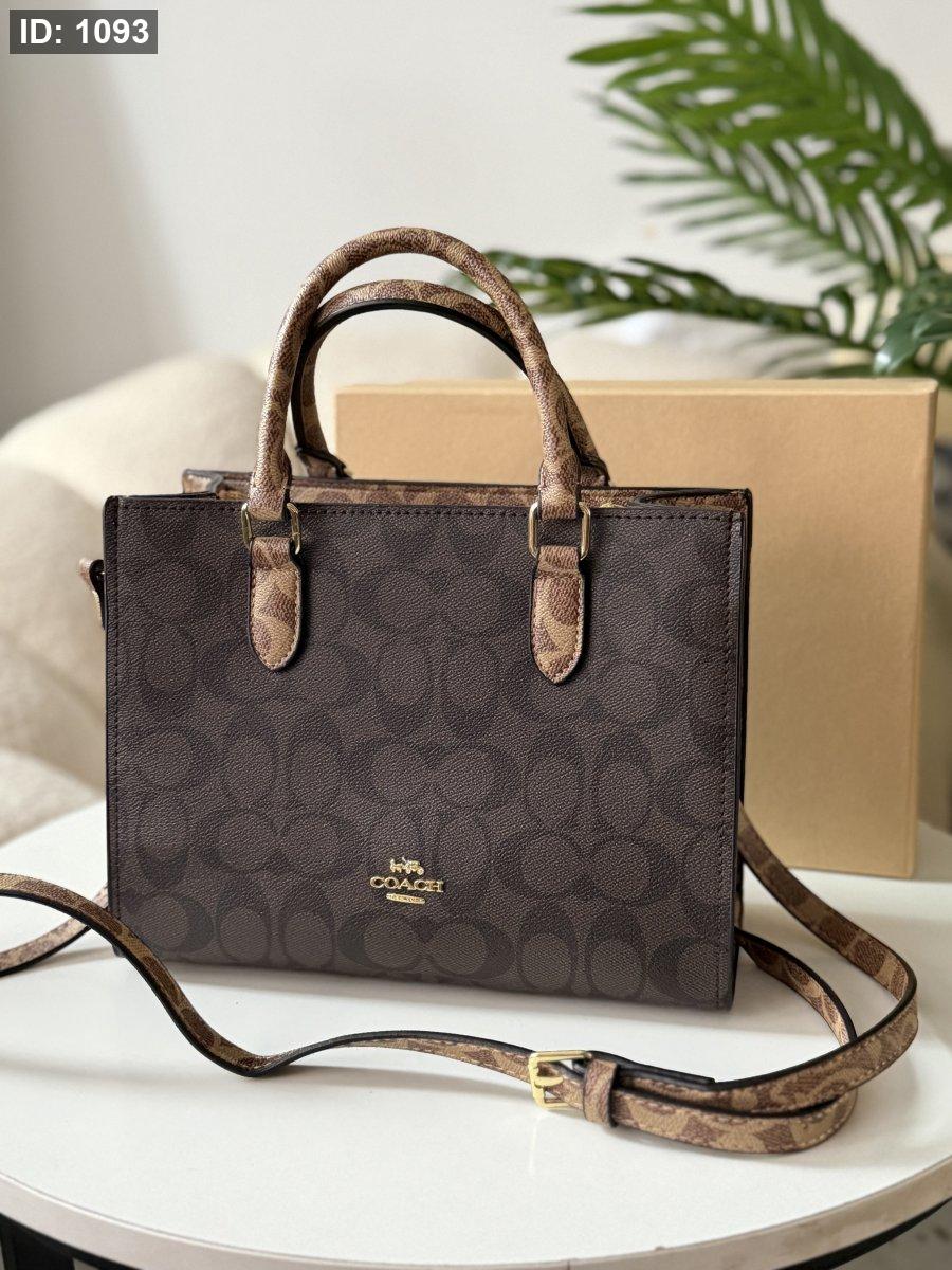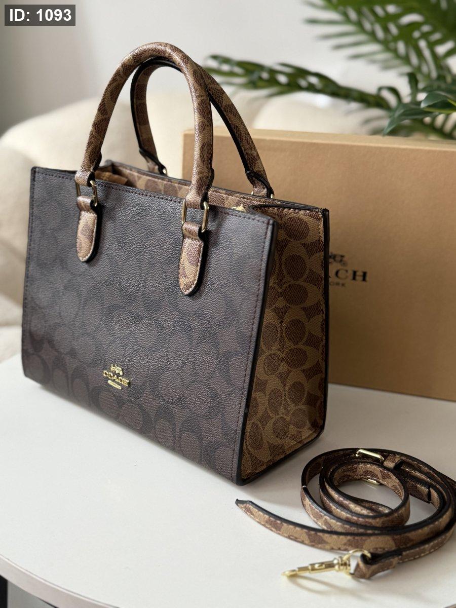 حقيبة كوتش لون بني محروق وبيج حجم وسط