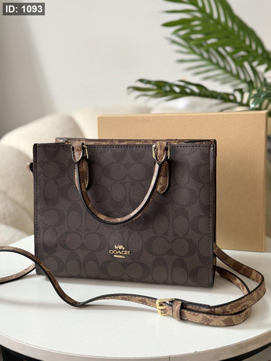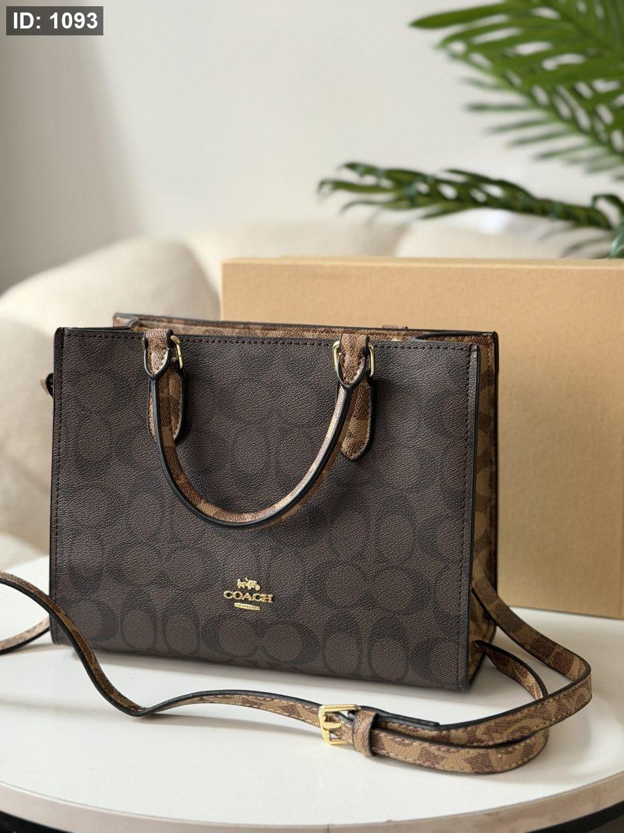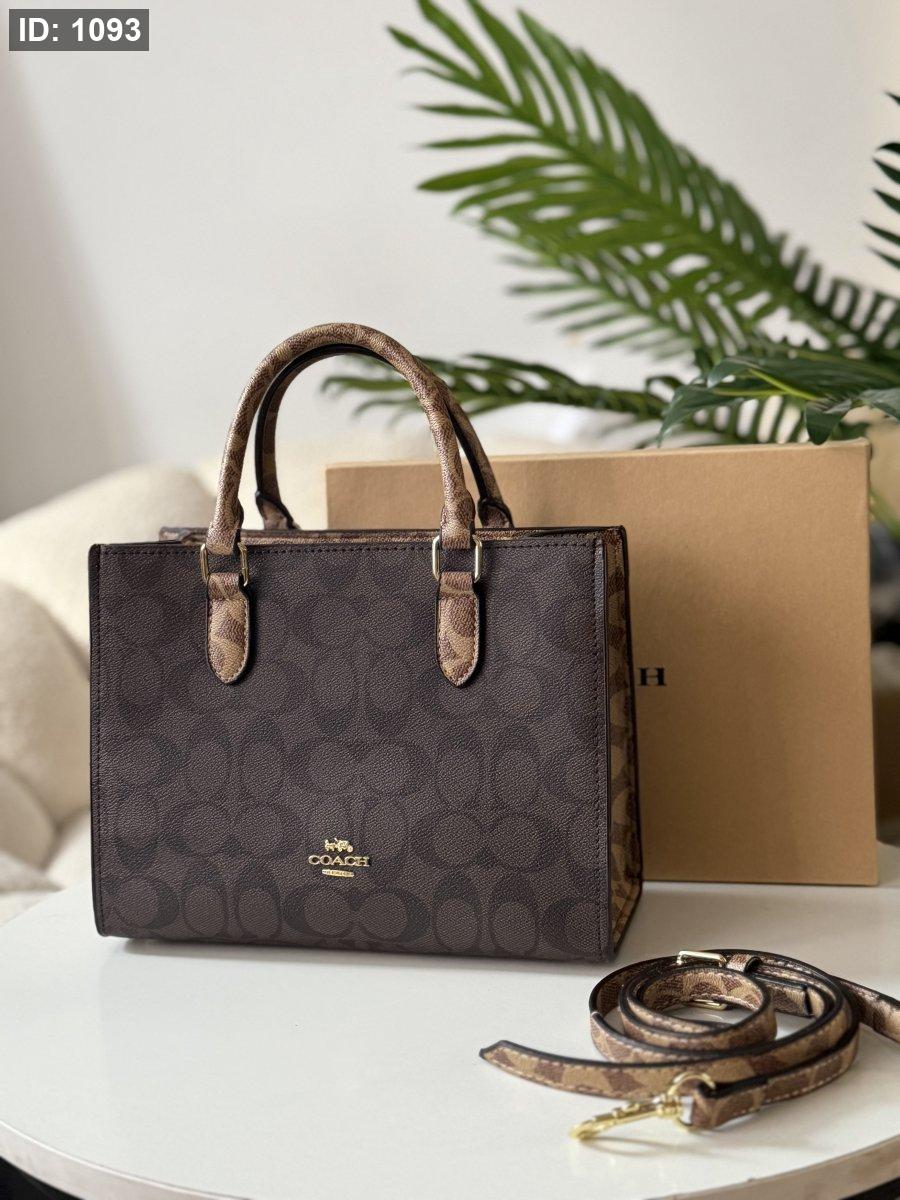 حقيبة كوتش لون بني محروق وبيج حجم وسط