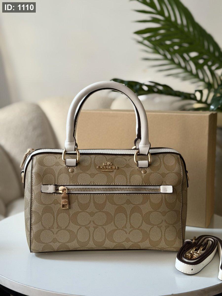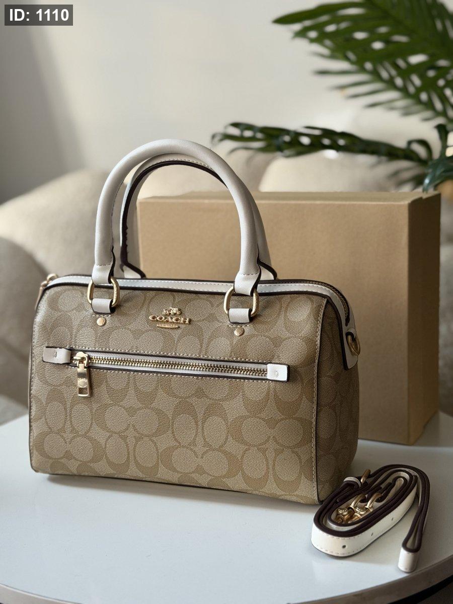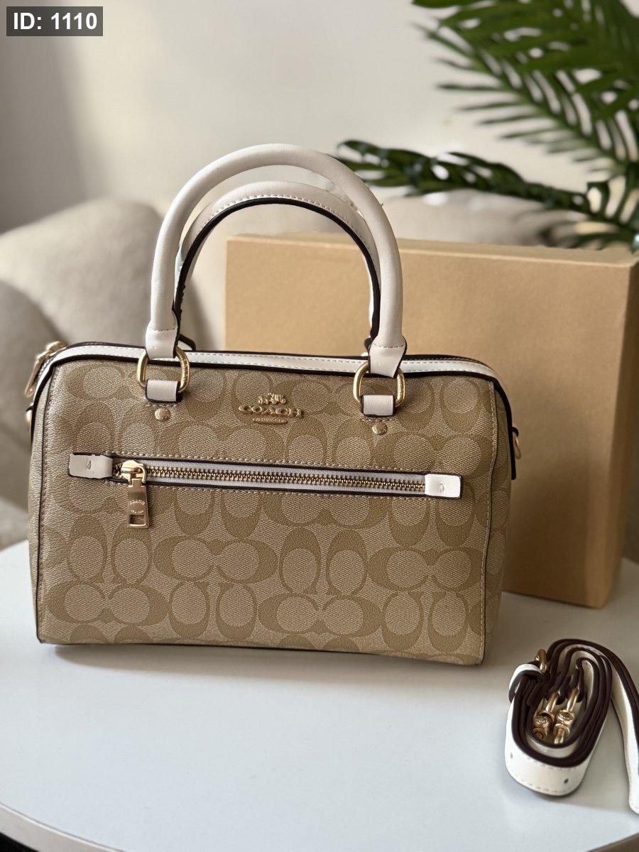 حقيبة كوتش لون بيج وابيض