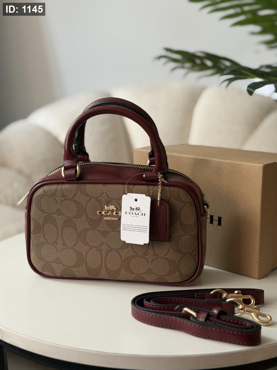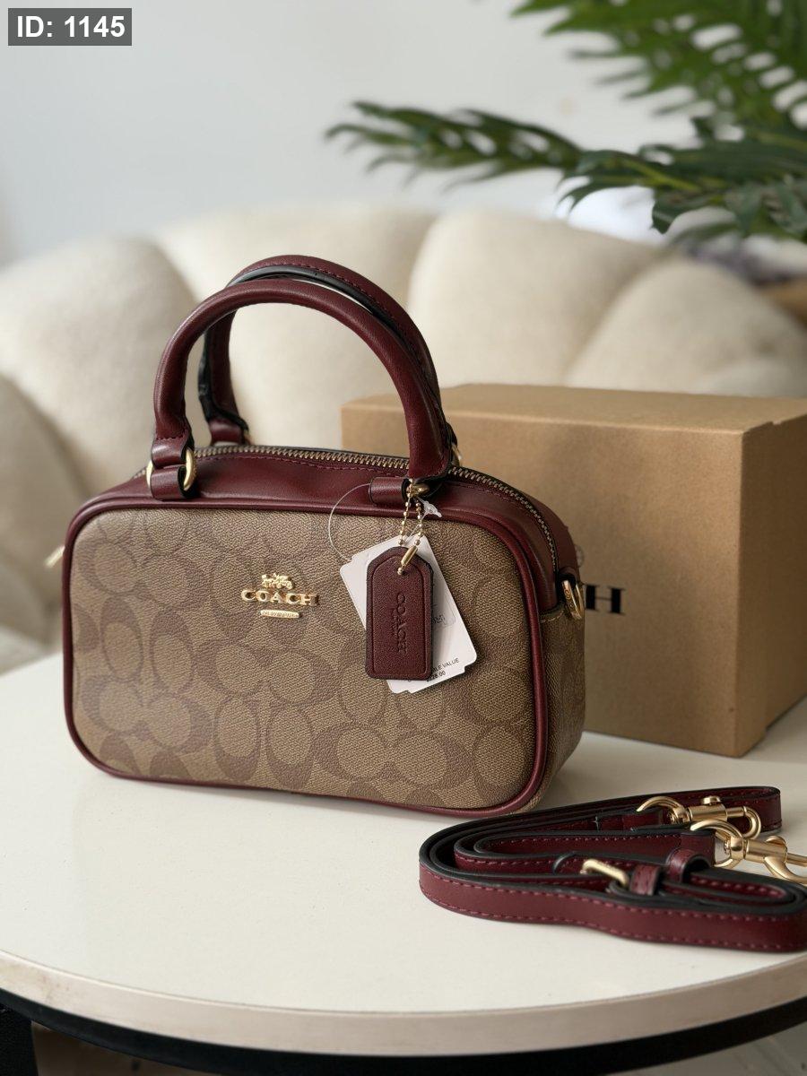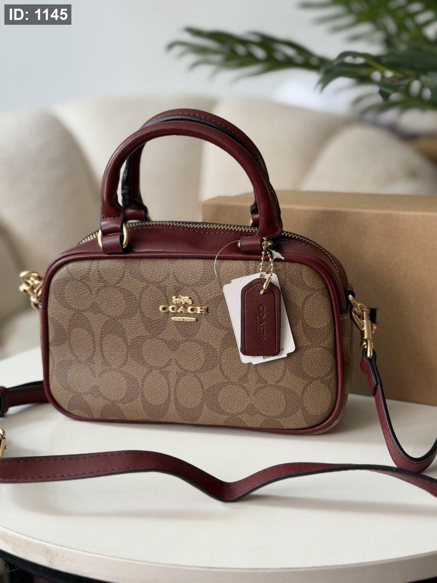 حقيبة كوتش لون برغندي وبيج حجم وسط عصغير