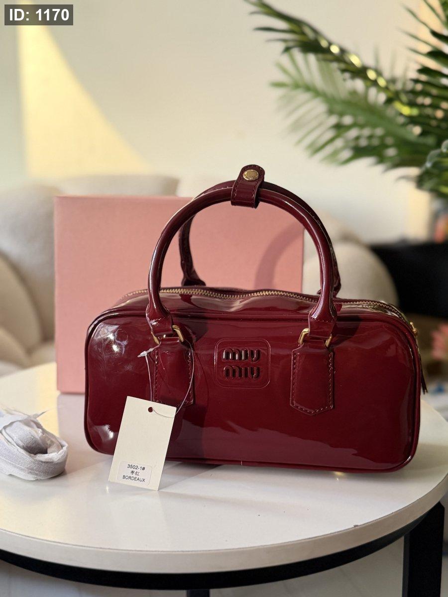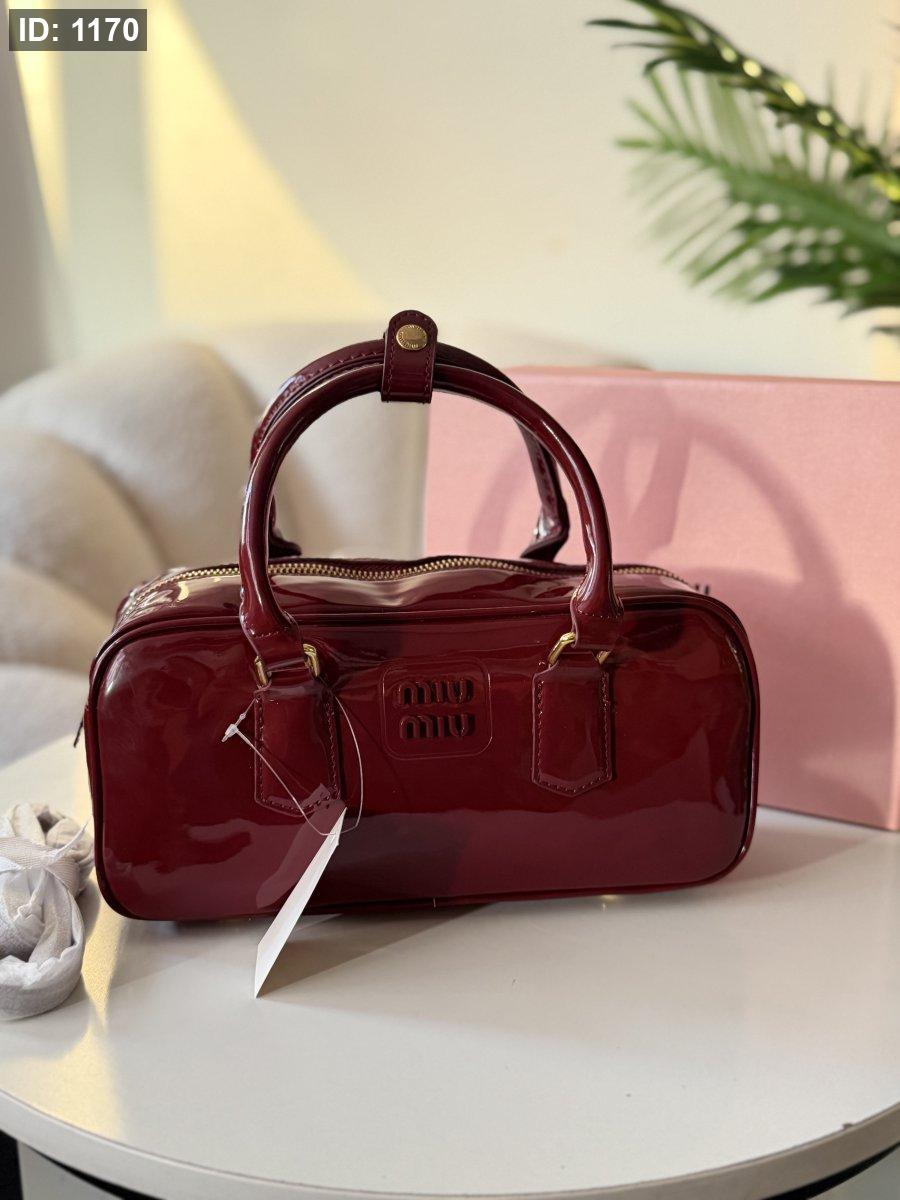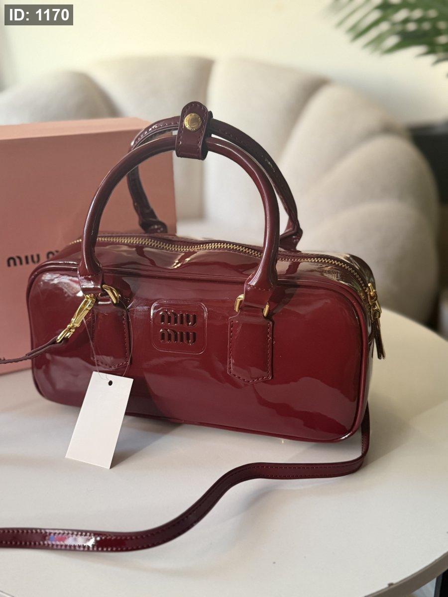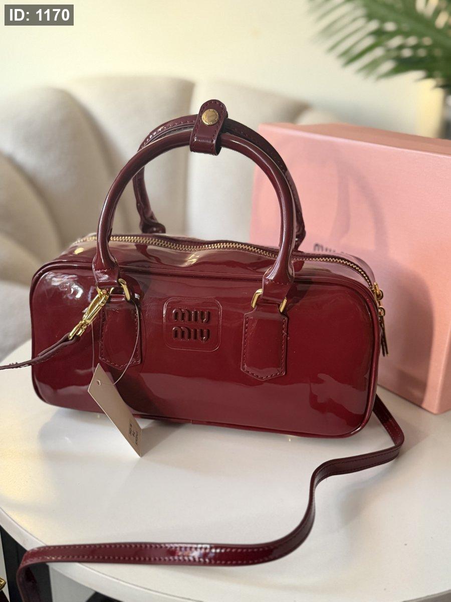حقيبة ميو ميو لون برغندي لامع حجم كبير
