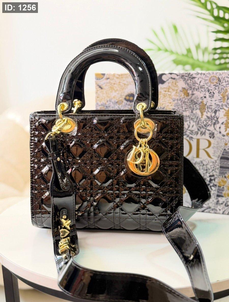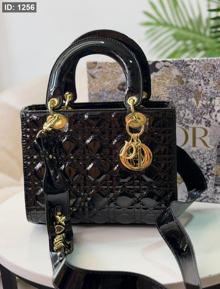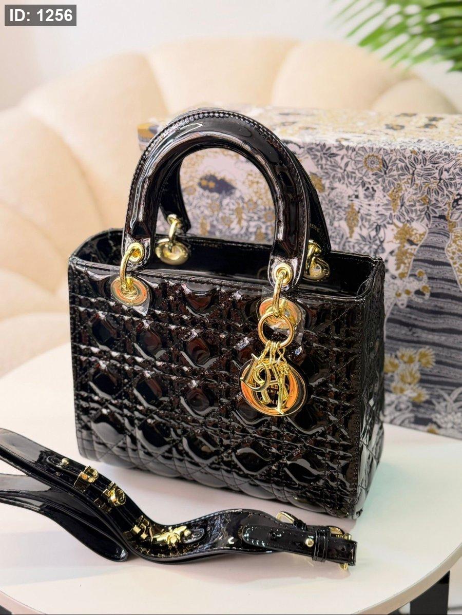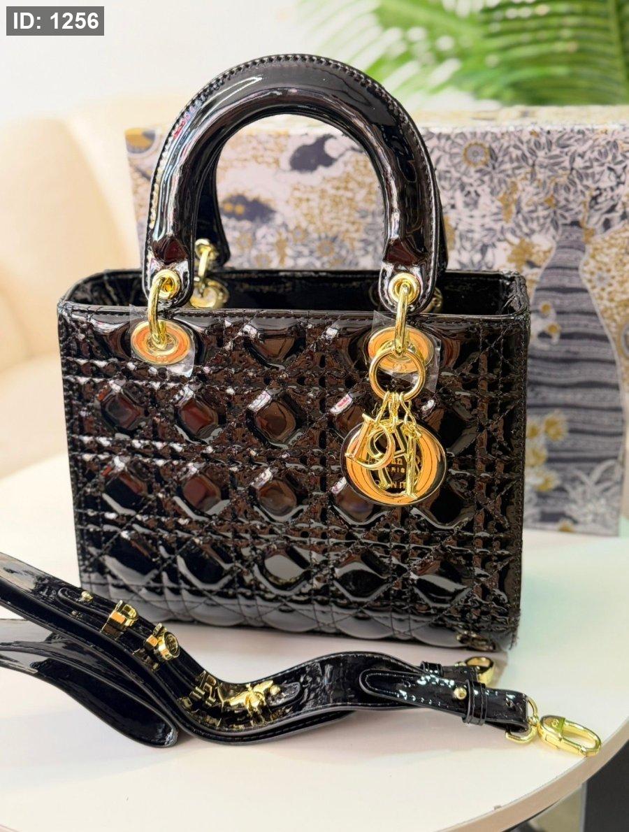 حقيبة ليدي ديور لون اسود لامع حجم كبير