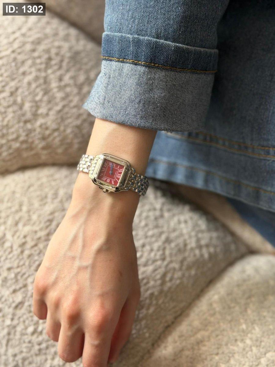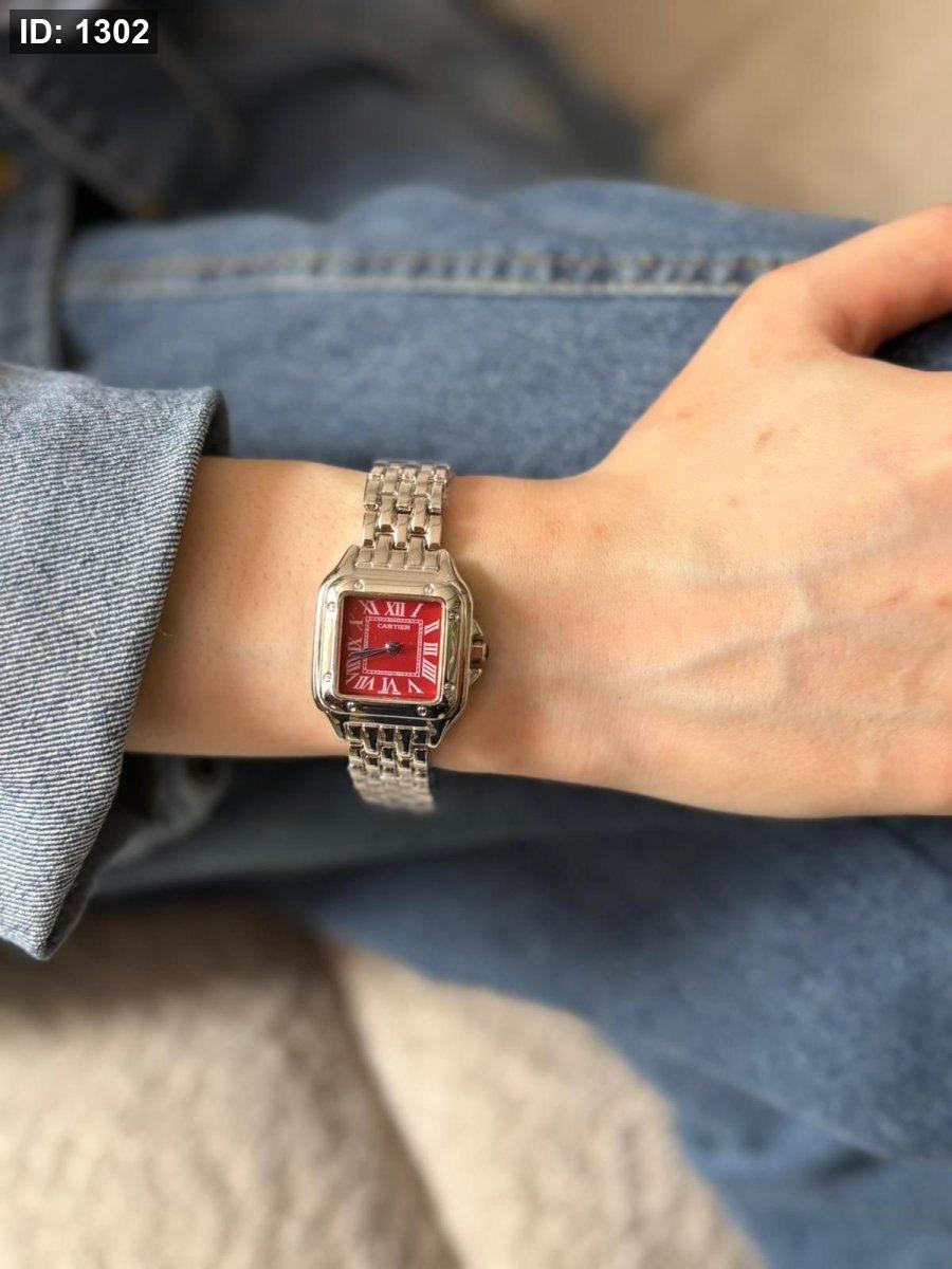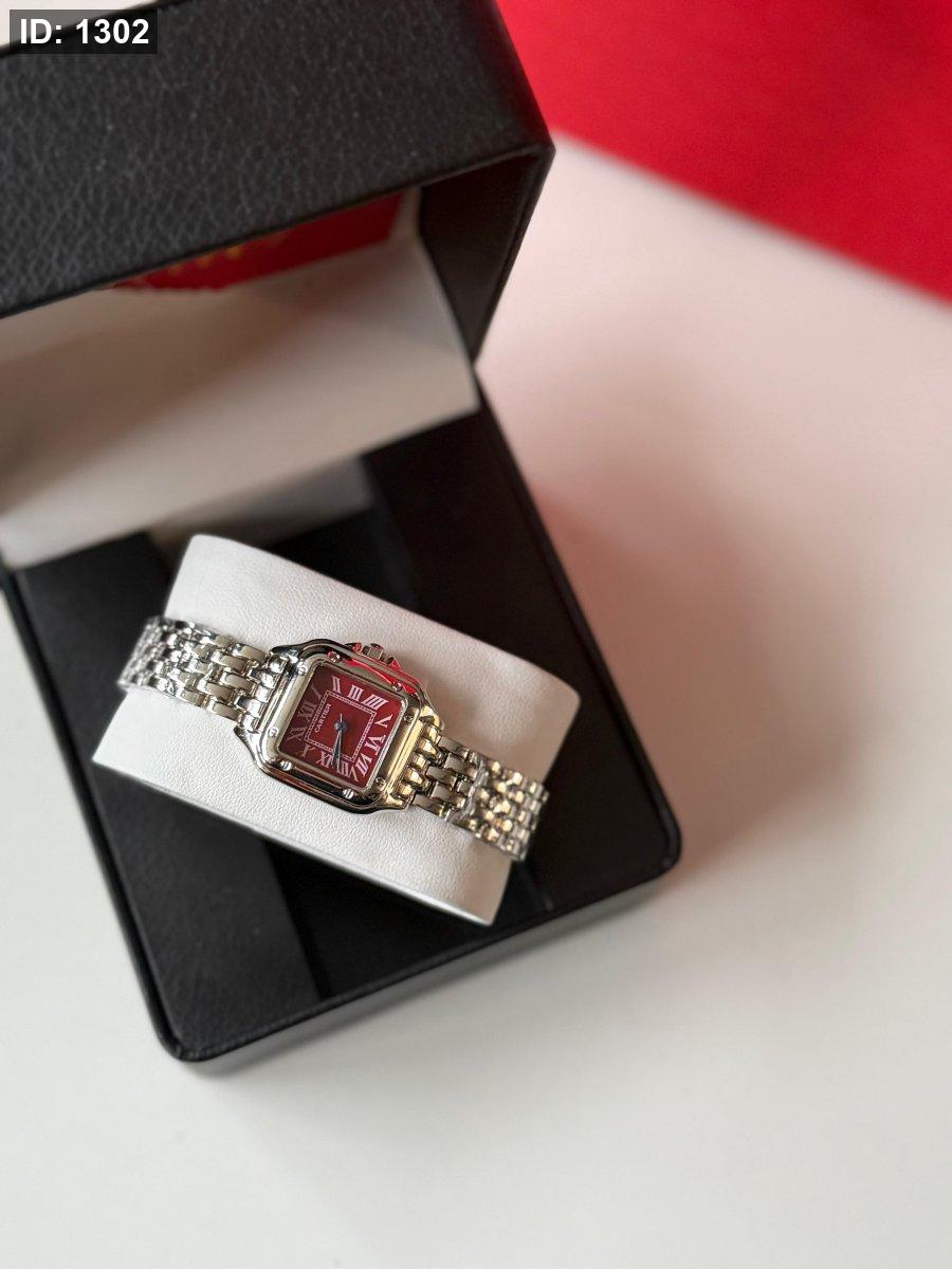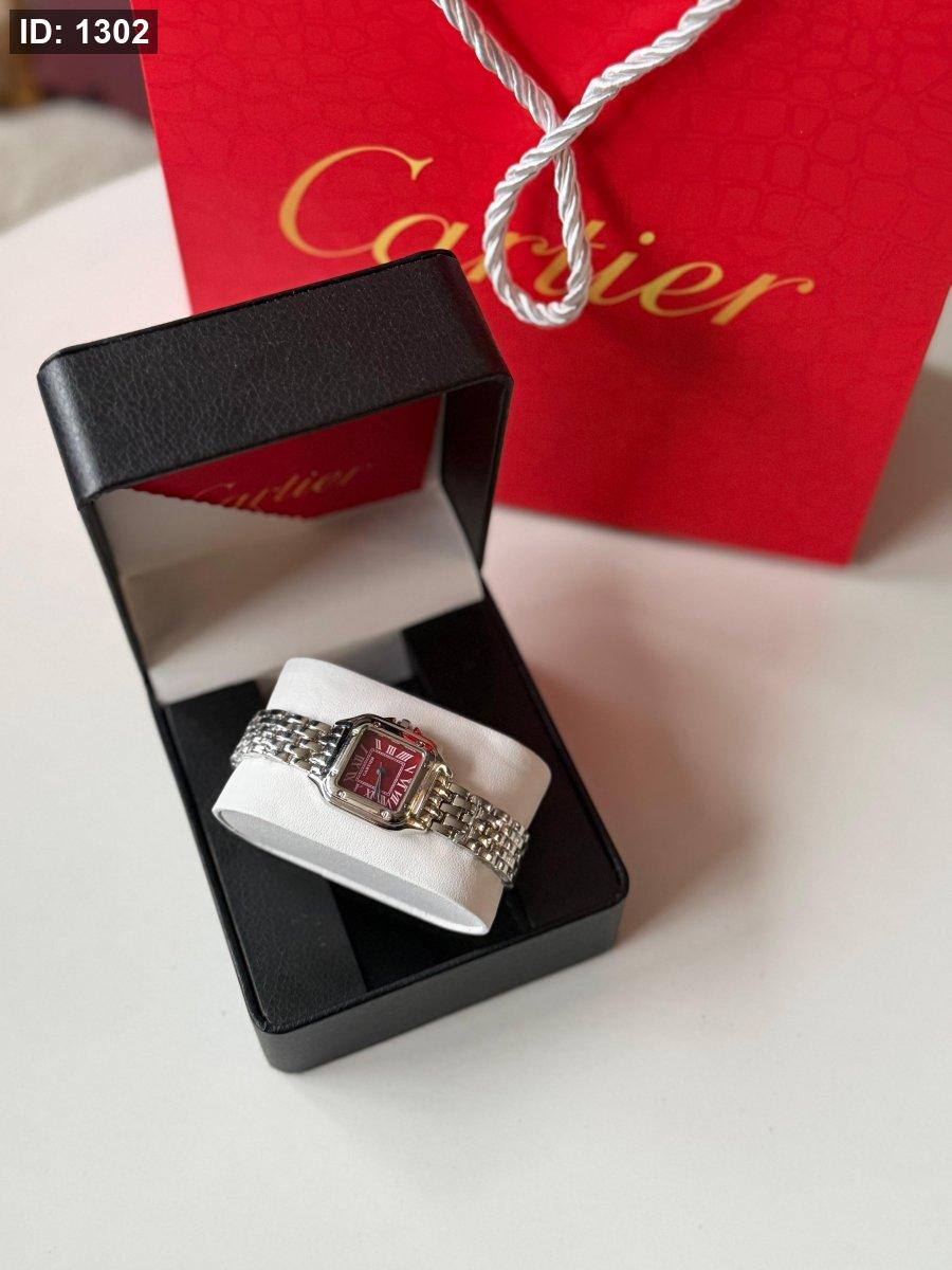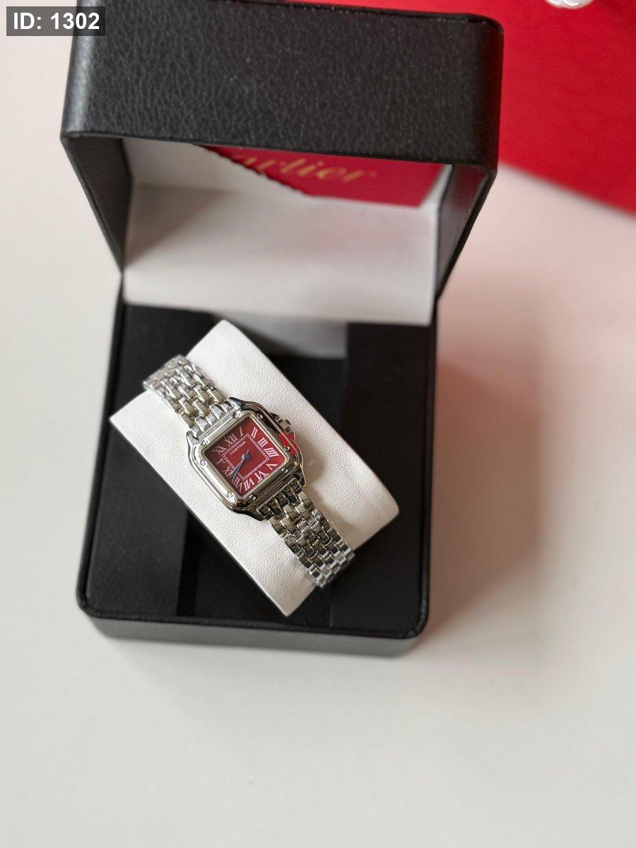 ساعة كارتير الهاردوير سلفر الارضية برغندي