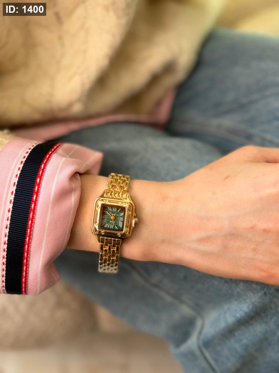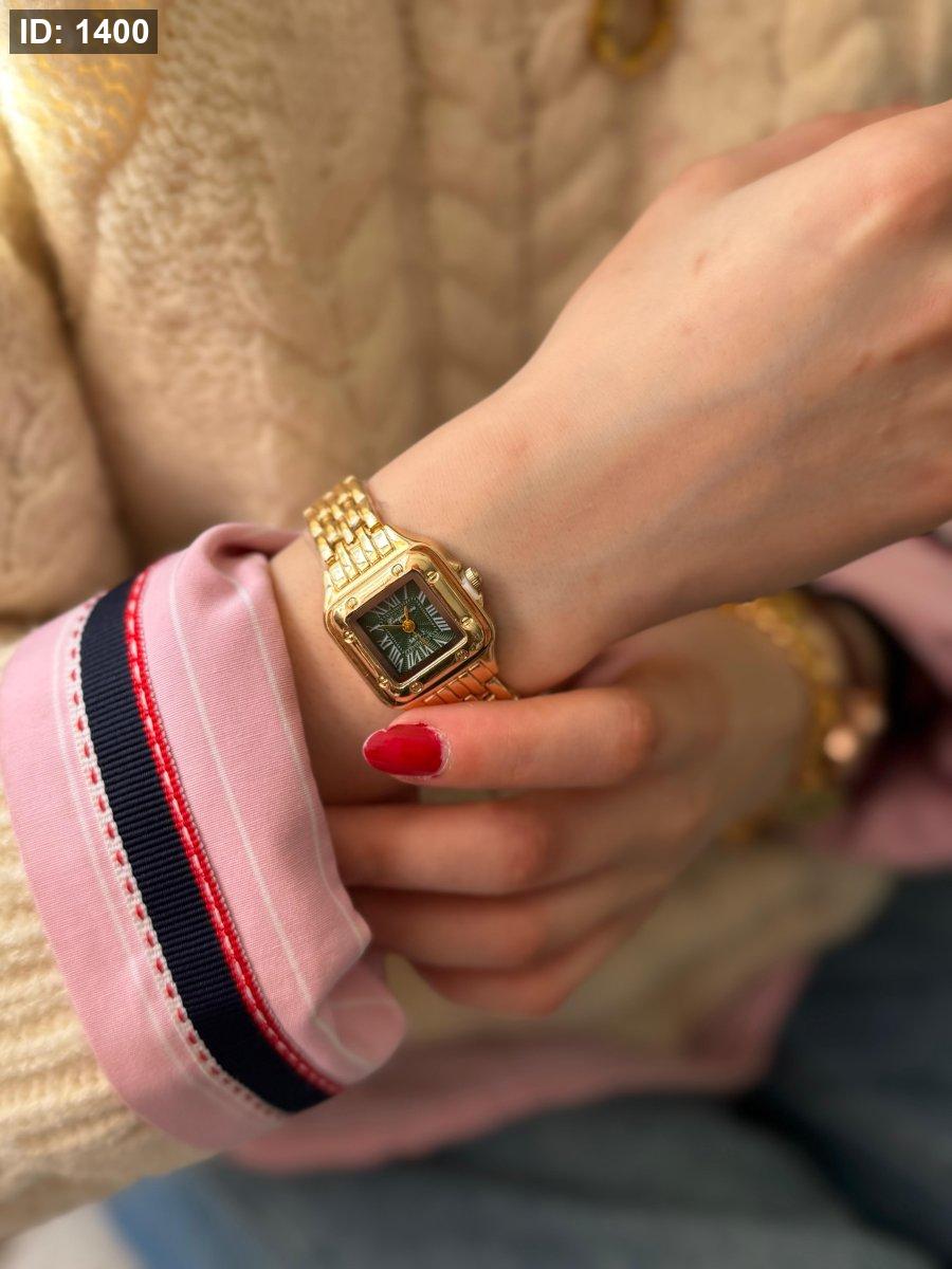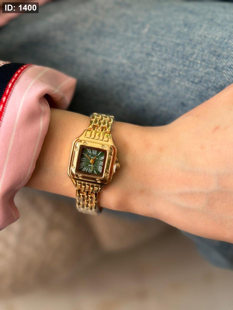 ساعة شبيه كارتير ارضية اخضر الهاردوير مكس بين الذهبي والسلفر اللون مكفول