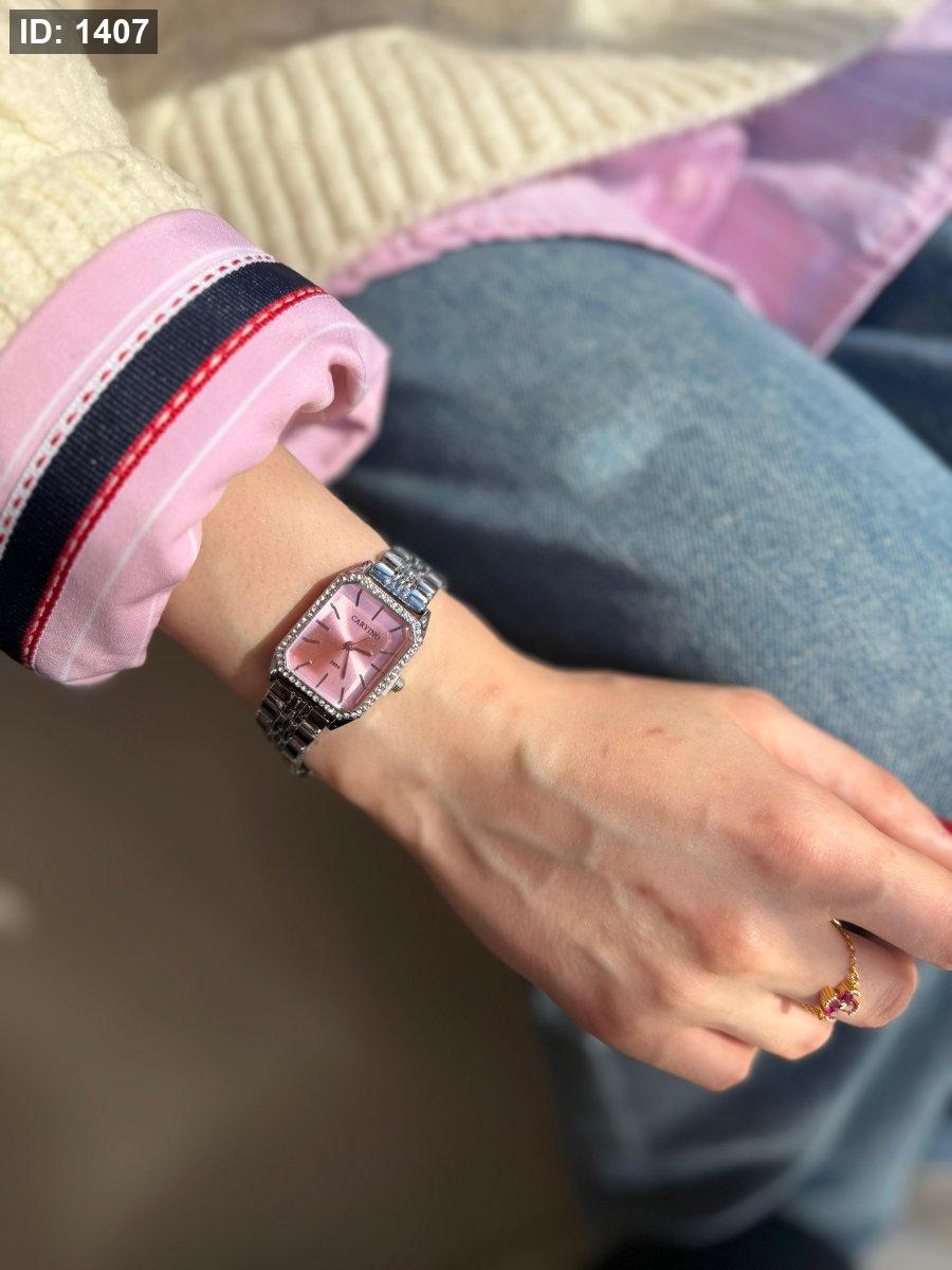 ساعة شبيه روليكس مينا زهري هاردوير سلفر اللون مكفول
