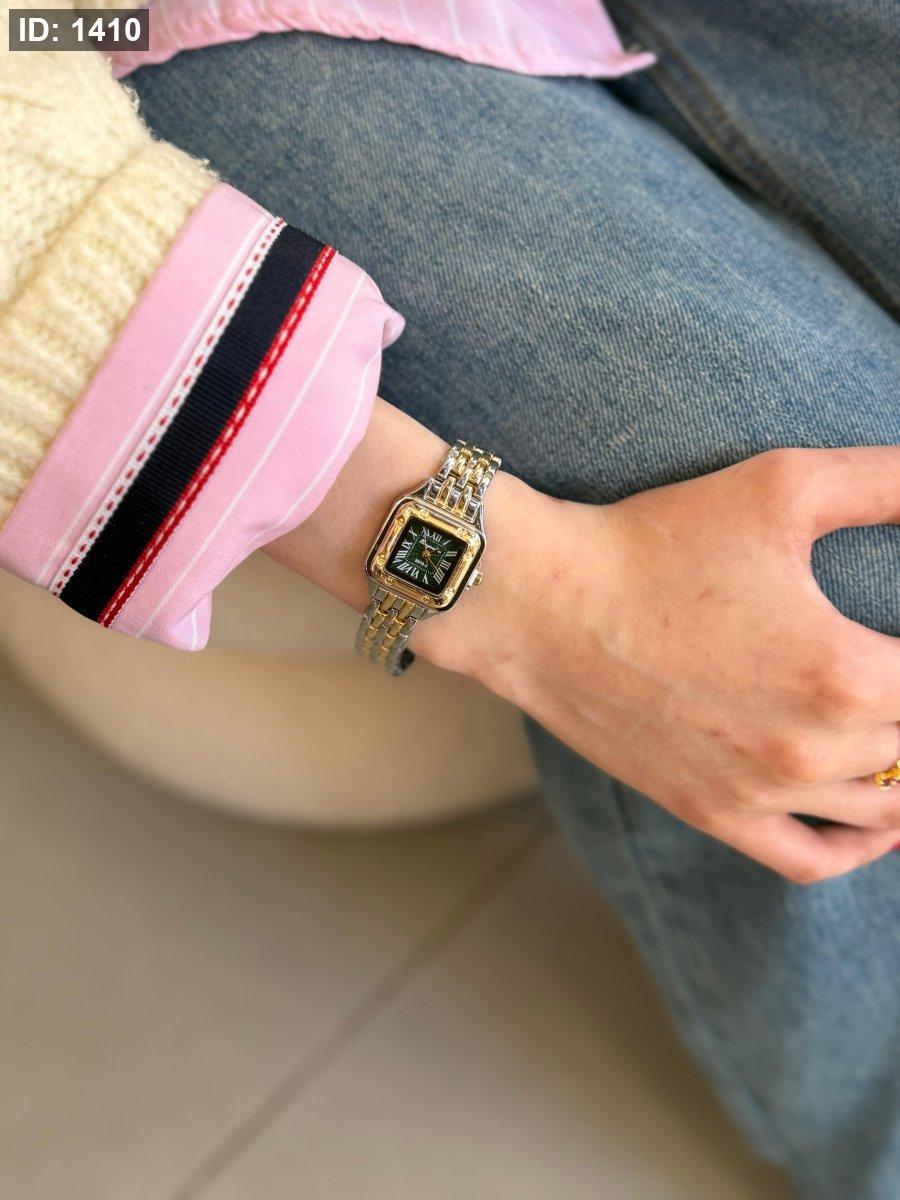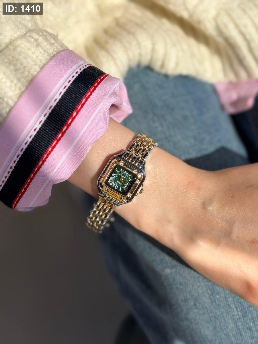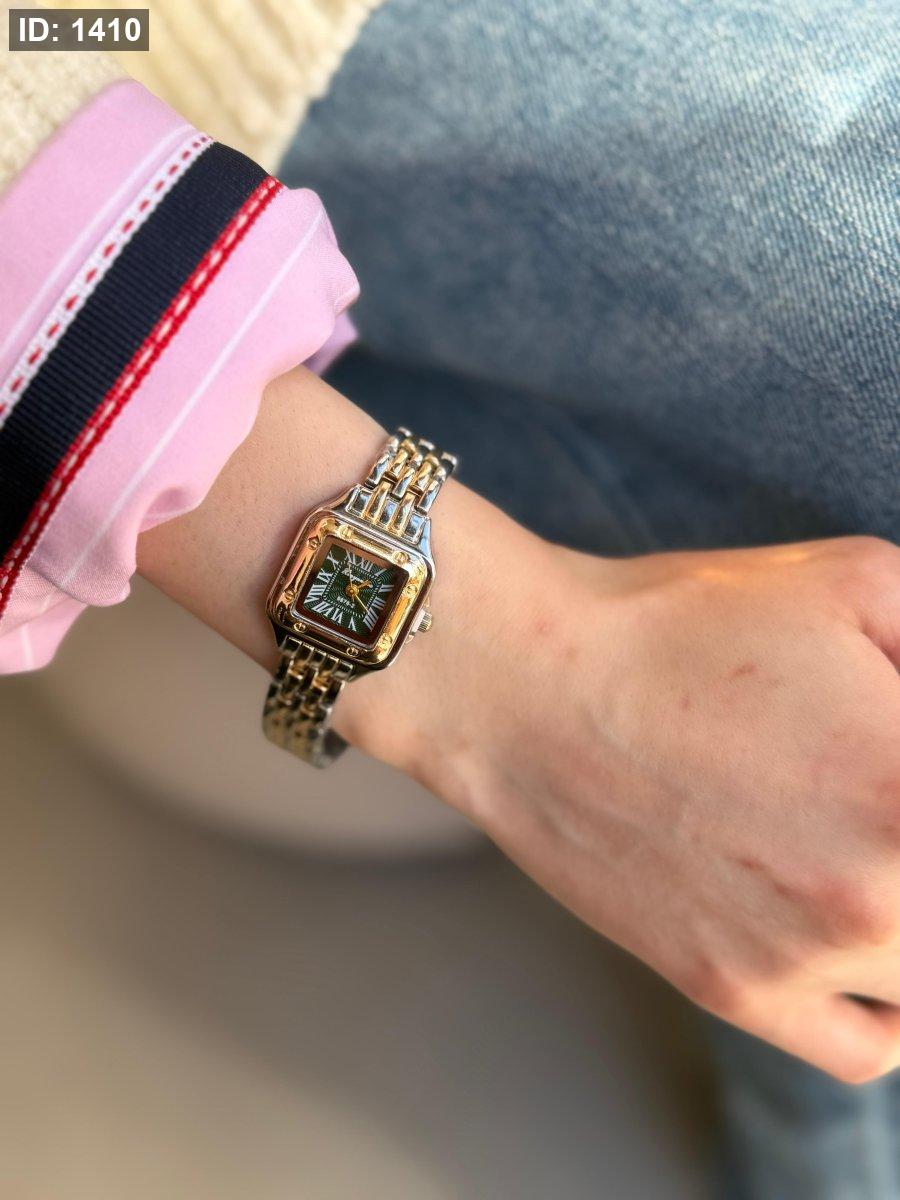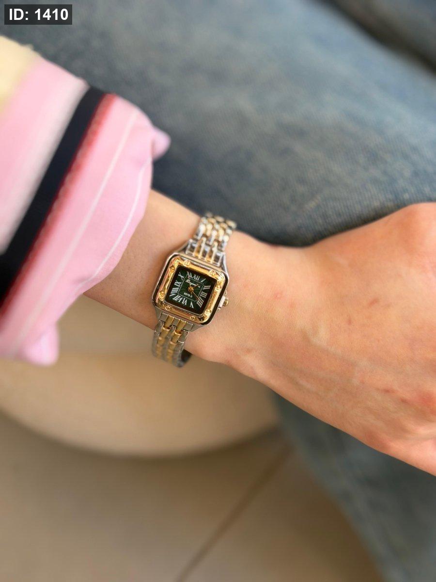 ساعة شبيه كارتير مكس بين الذهبي والسلفر المينا اخضر اللون مكفول