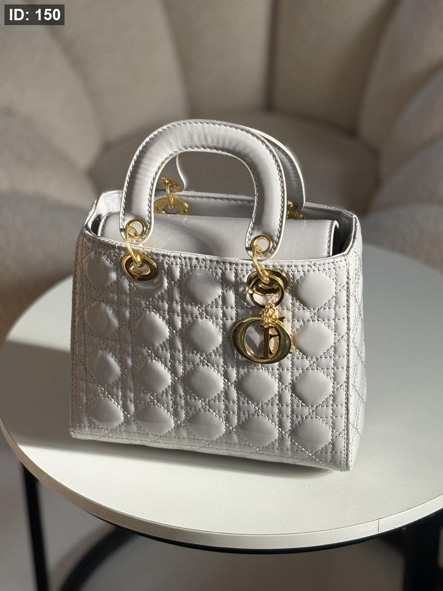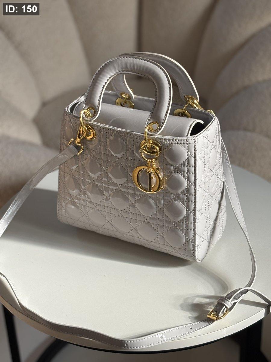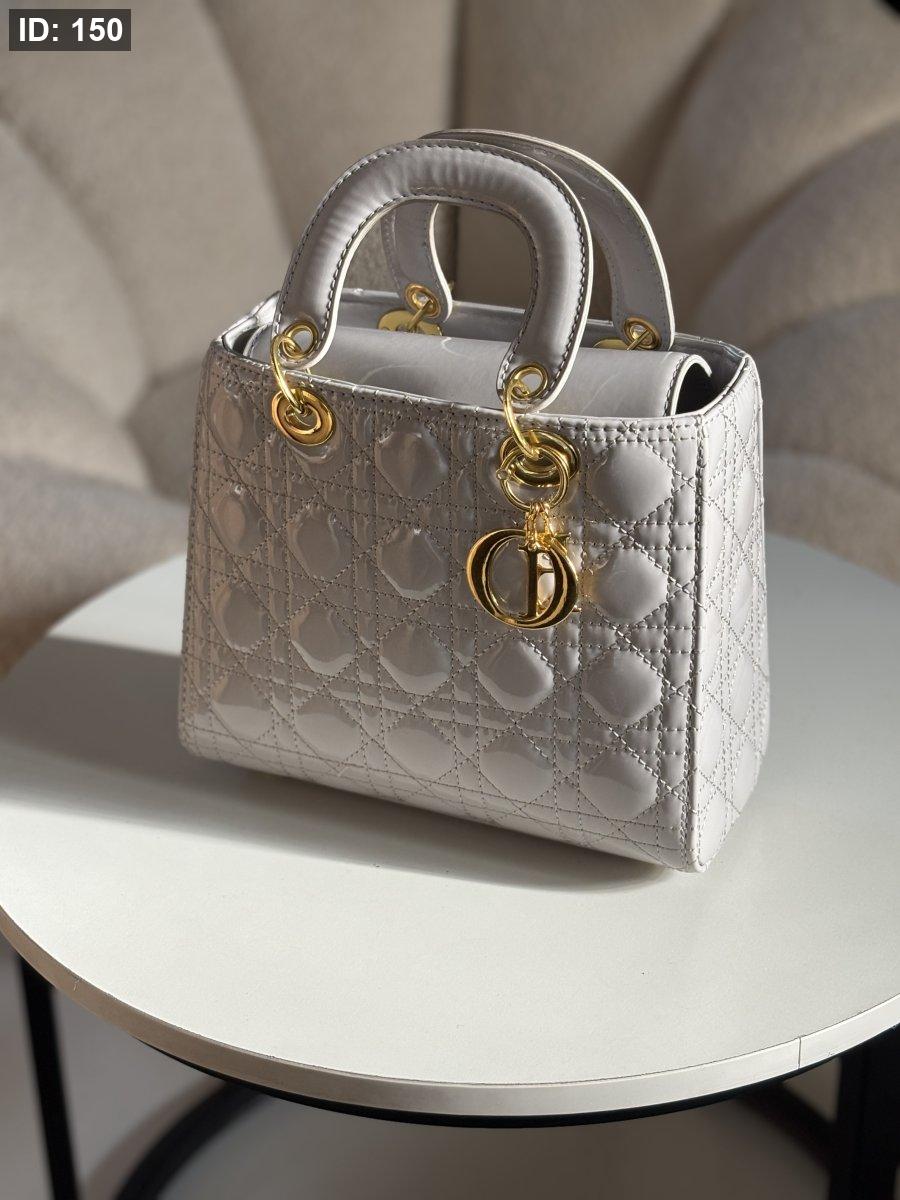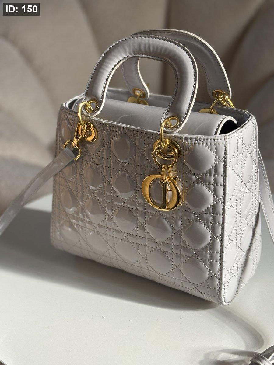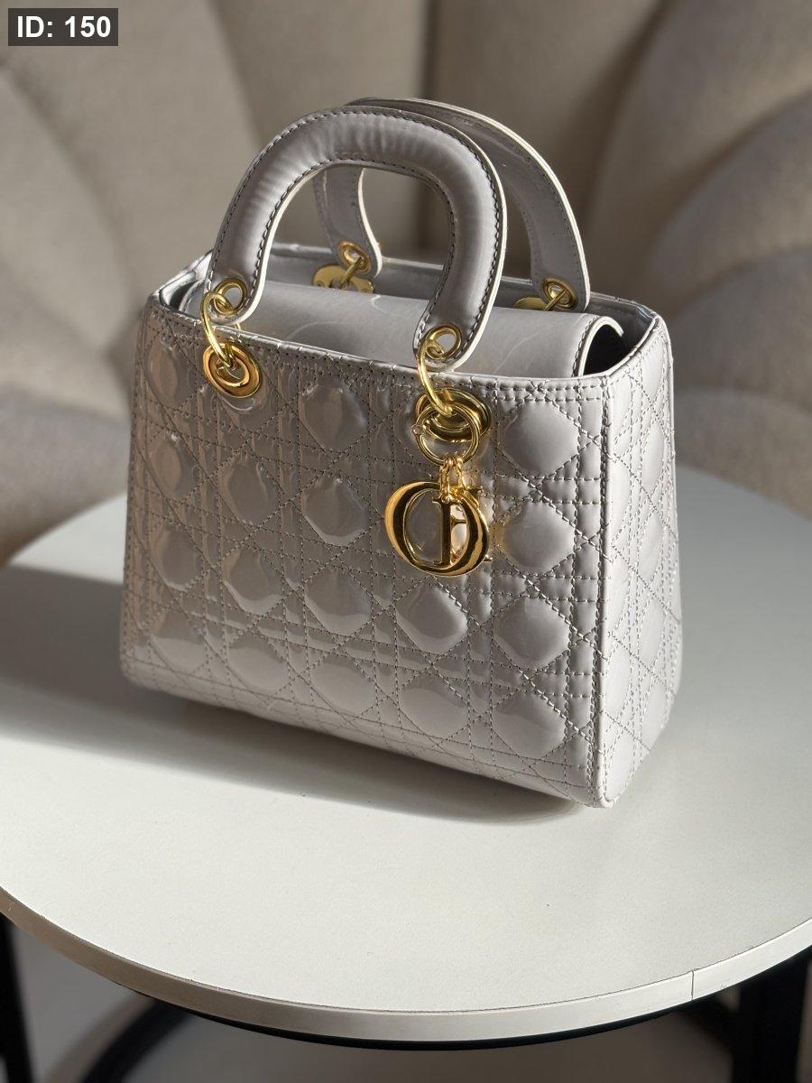 حقيبة شبيه ليدي ديور لون رمادي لامع