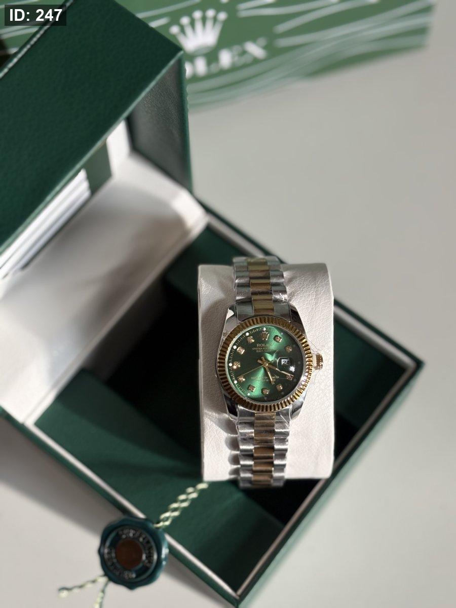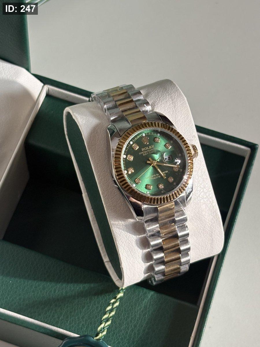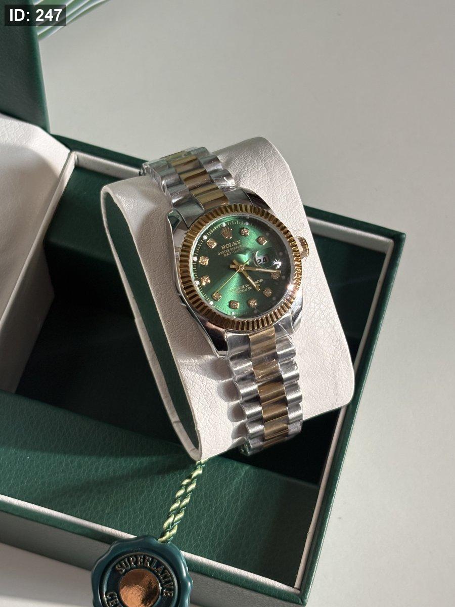 ساعة روليكس ستاتية ارضية اخضر الهاردوير مكس بين الذهبي والسلڤر