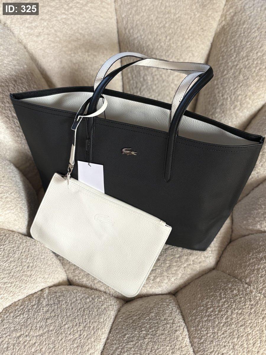 حقيبة لاكوست دبل فيس لون اسود وابيض