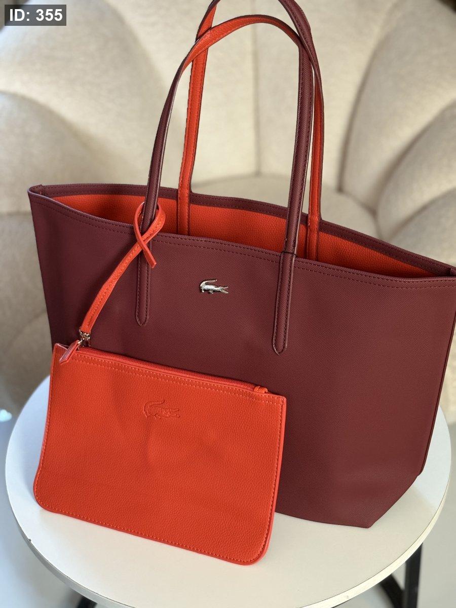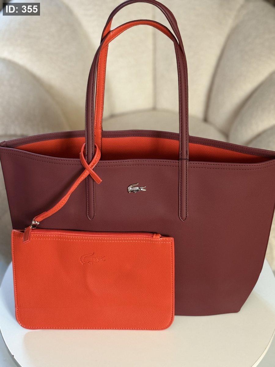 حقيبة لاكوست دبل فيس لون برغندي وبرتقالي