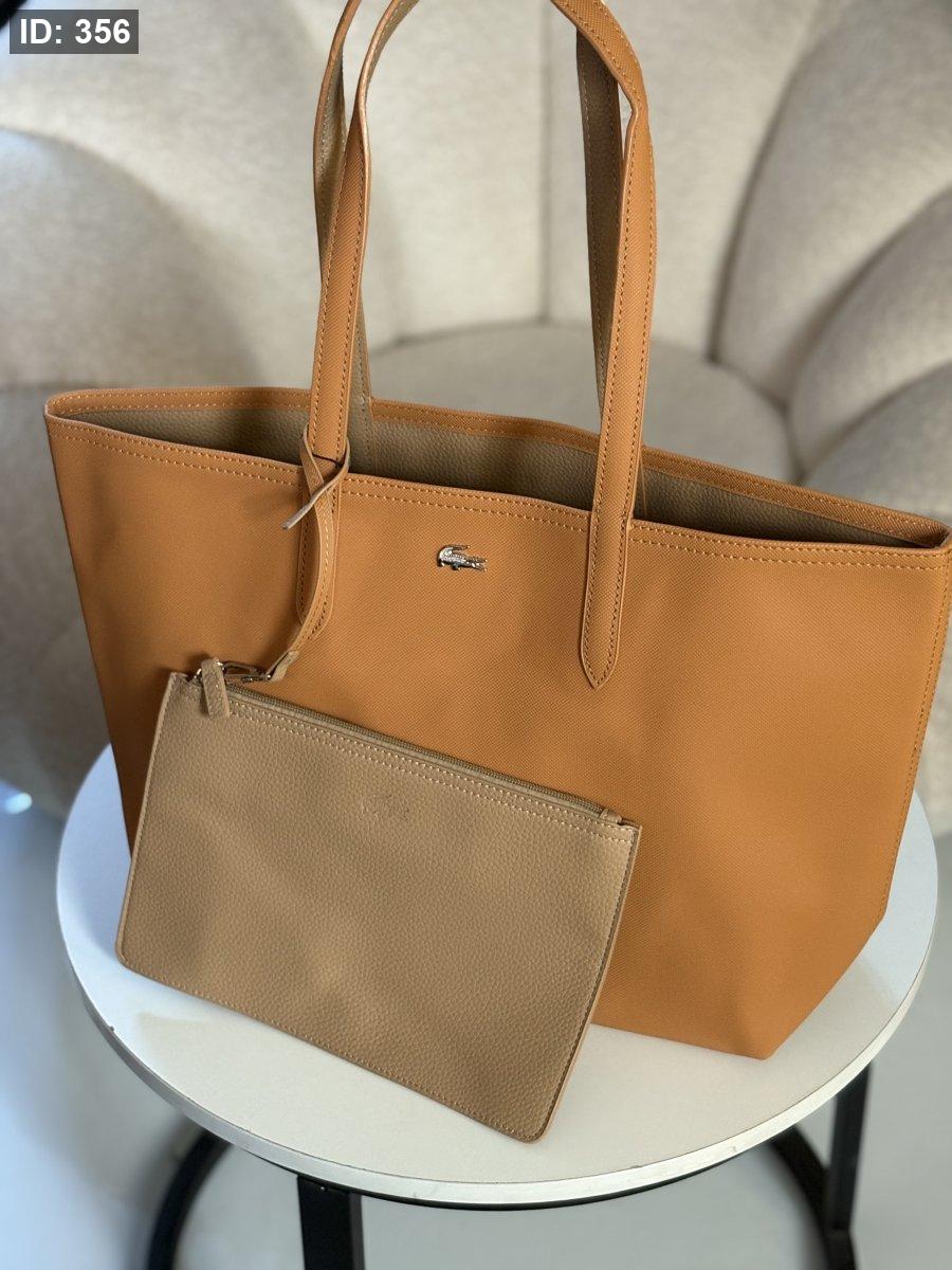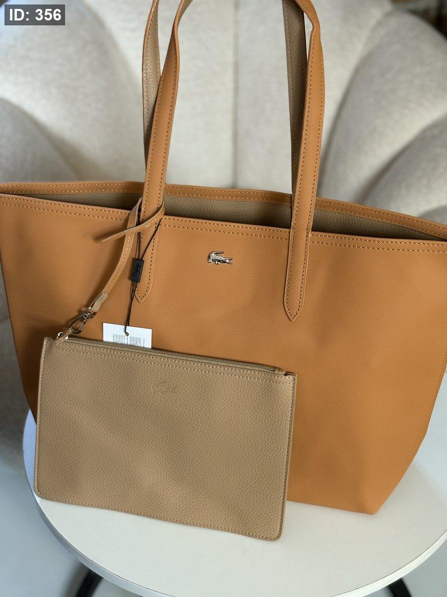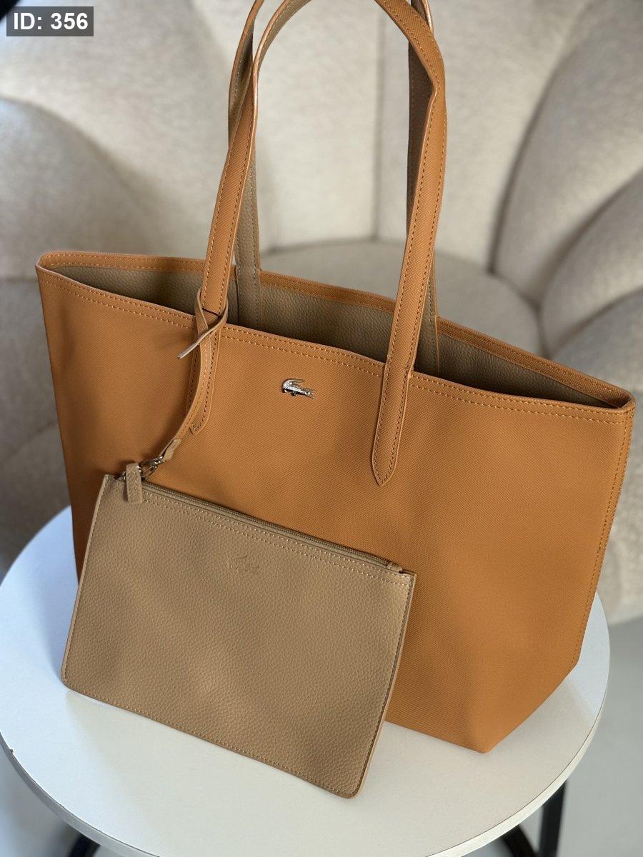 حقيبة لاكوست دبل فيس لون كاكي وبيج