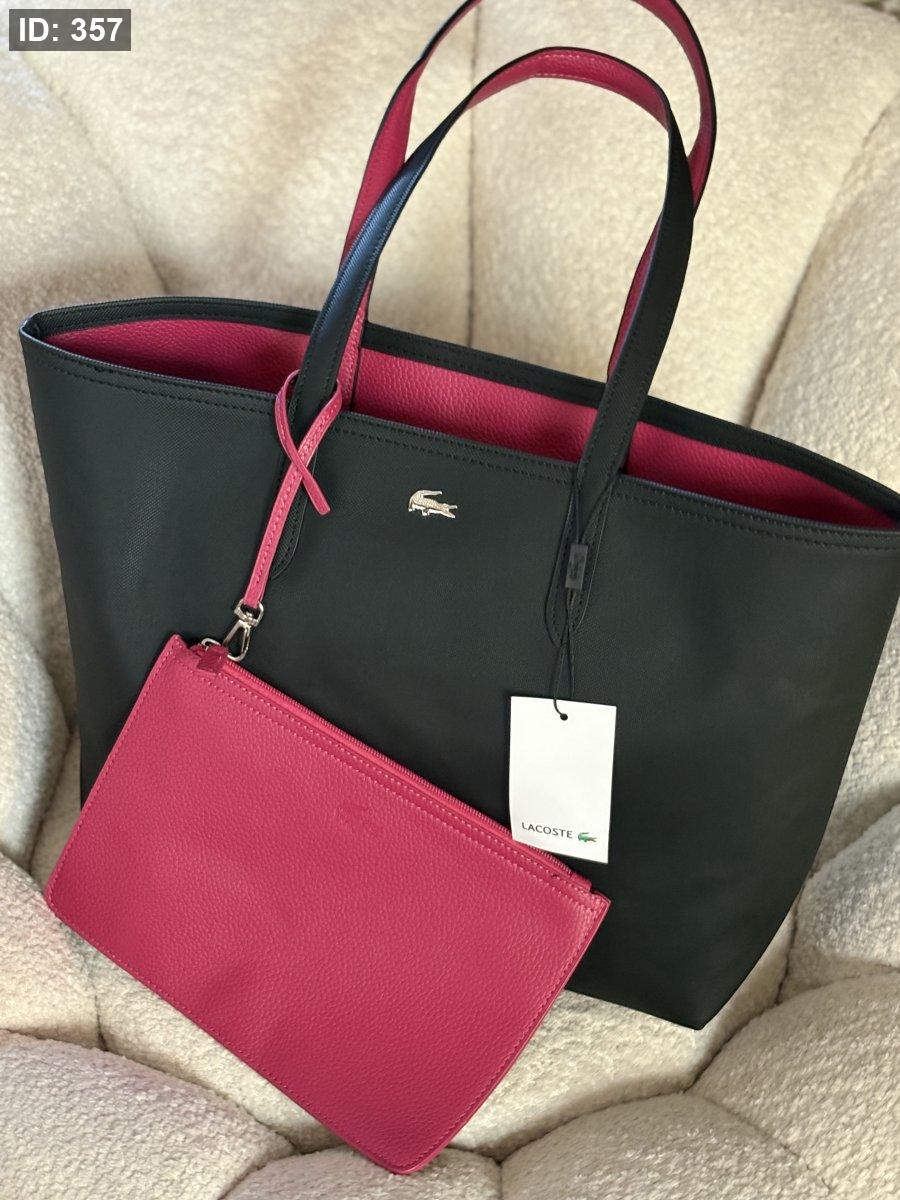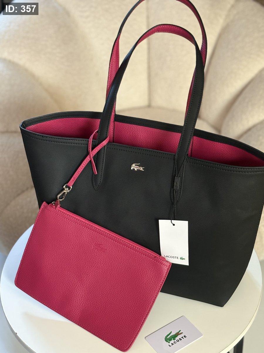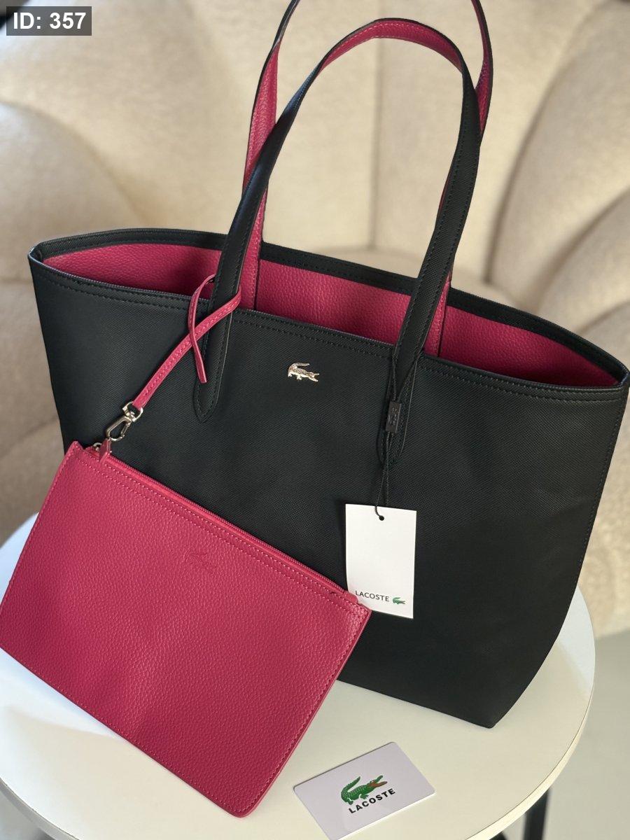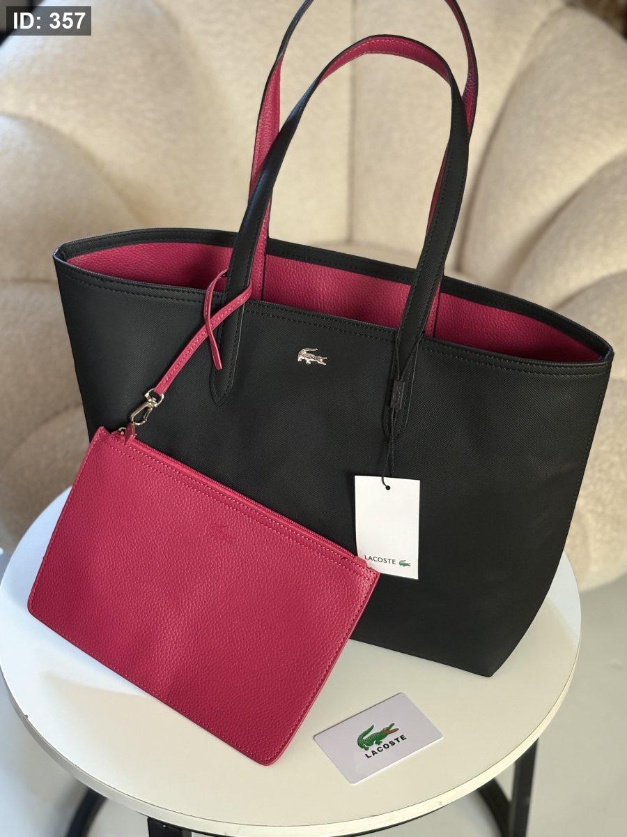 حقيبة لاكوست دبل فيس لون اسود وفوشي