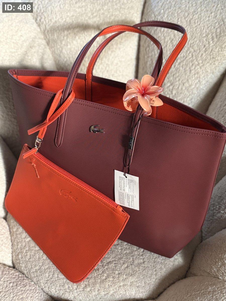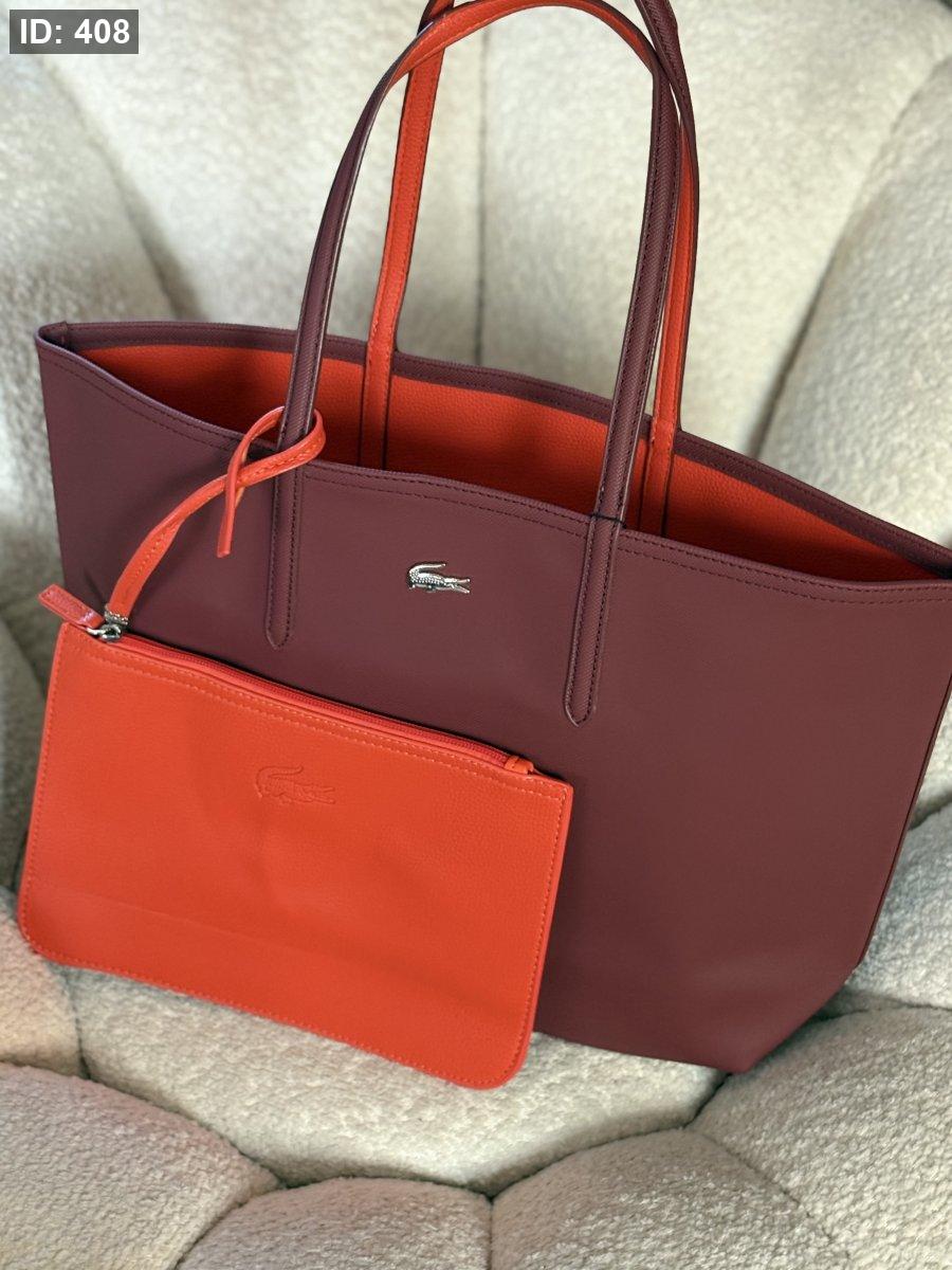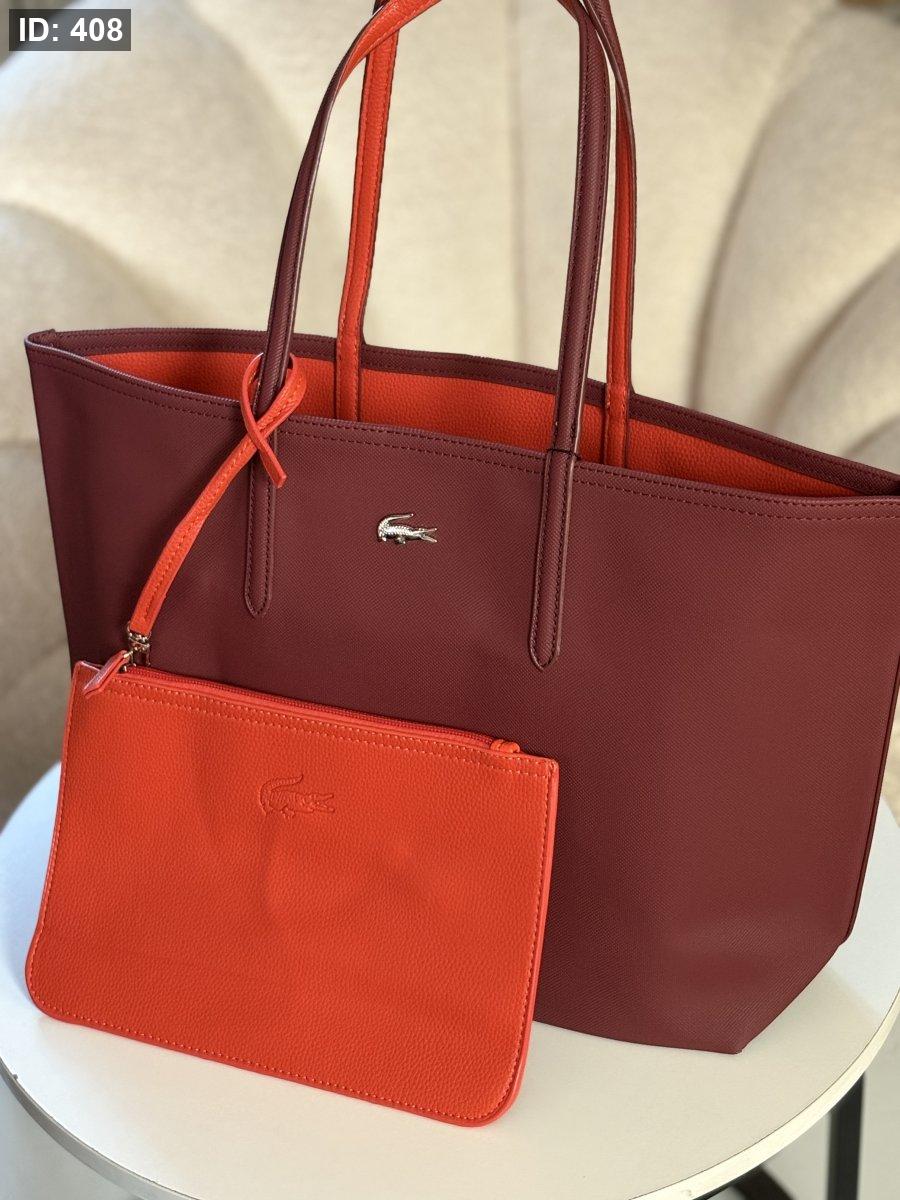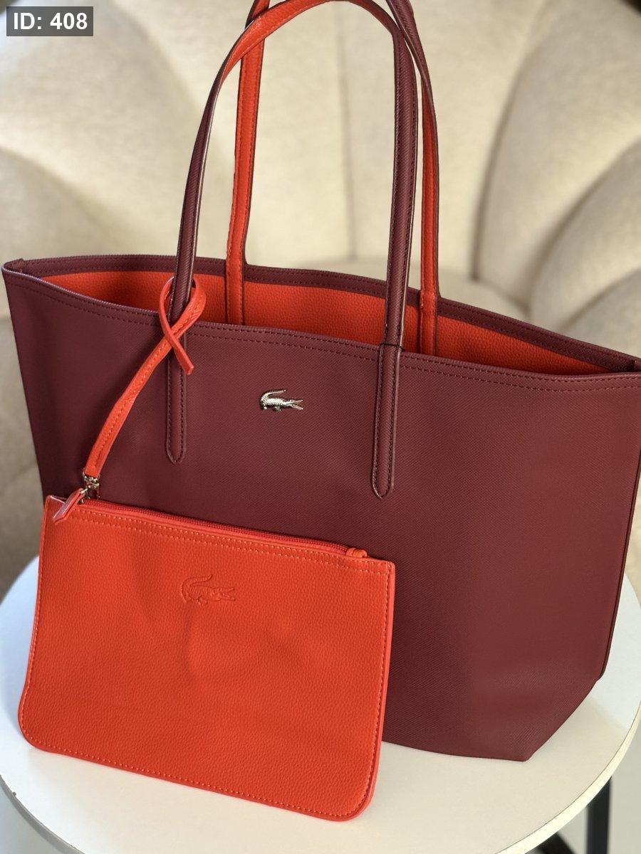 حقيبة لاكوست دبل فيس لون برغندي وبرتقالي
