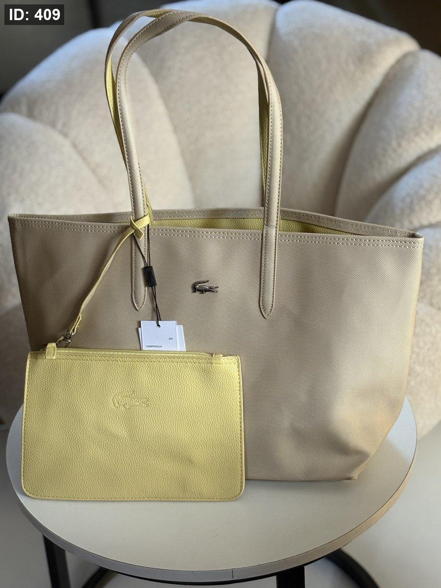 حقيبة لاكوست دبل فيس لون بيج واصفر