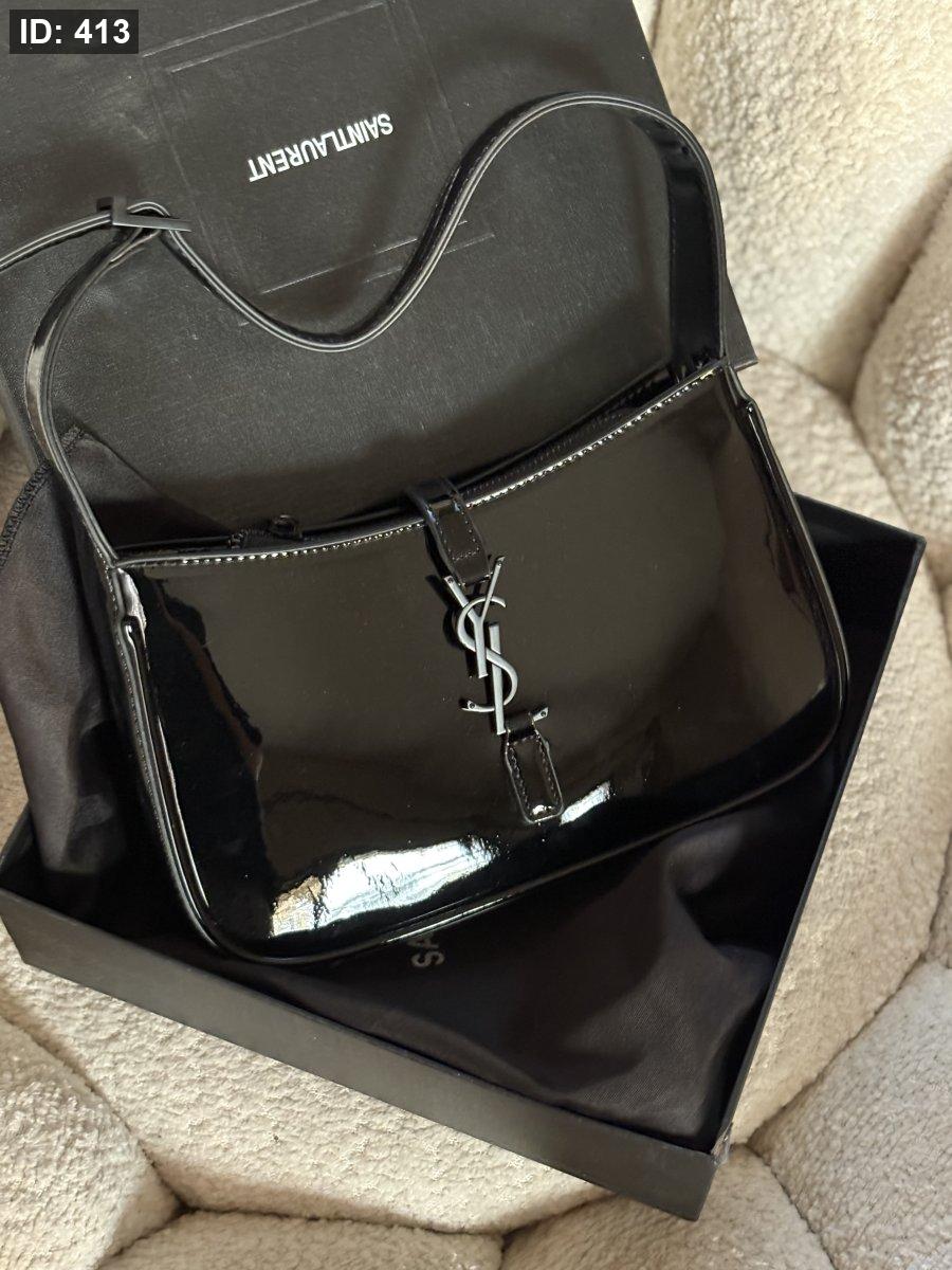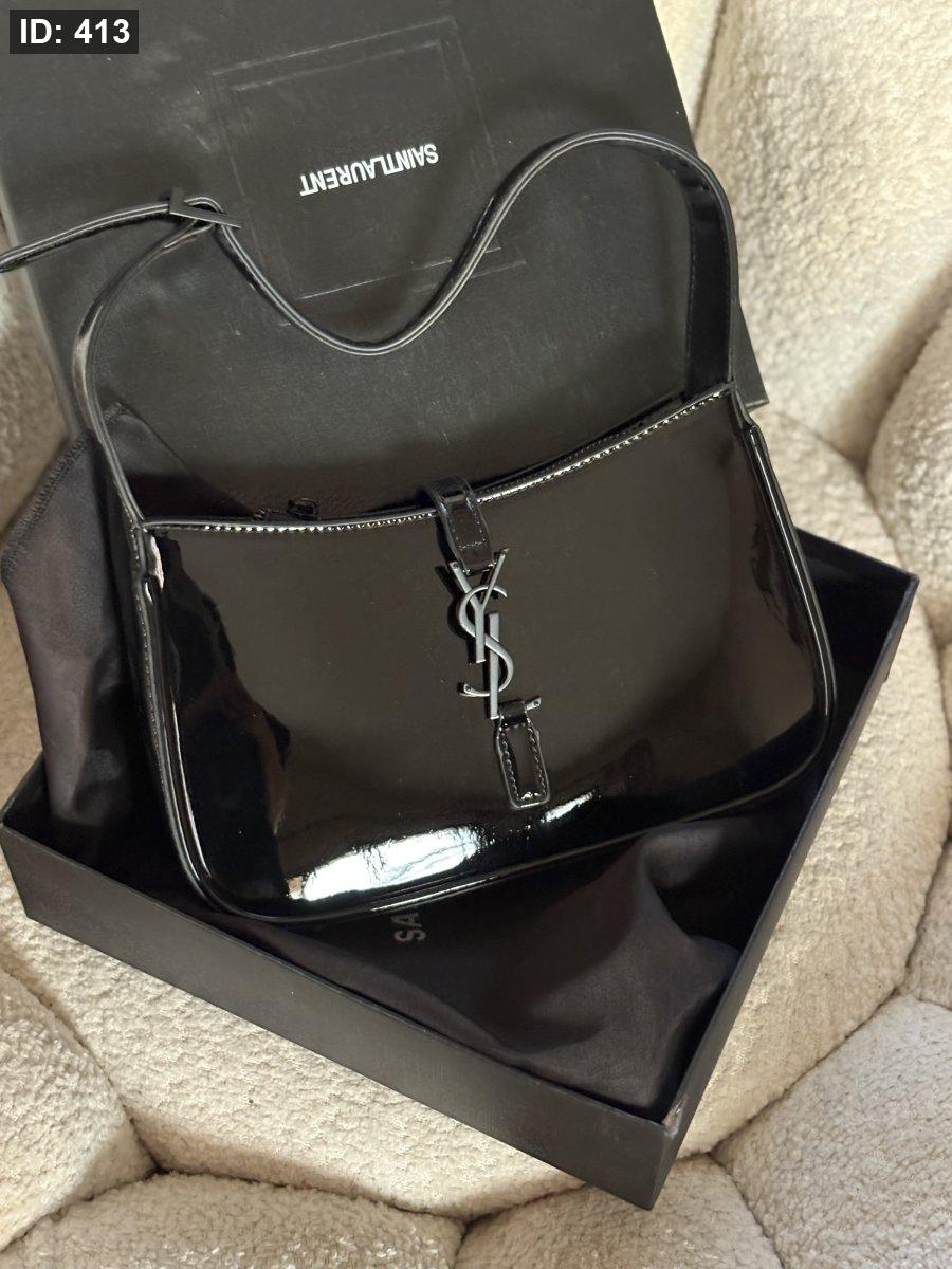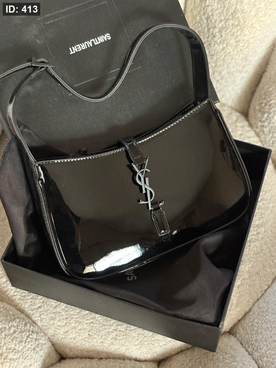 حقيبة سان لوران لون اسود لميع حجم القاعدة 24 سم