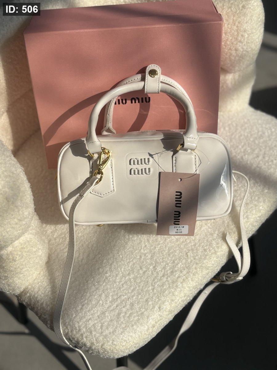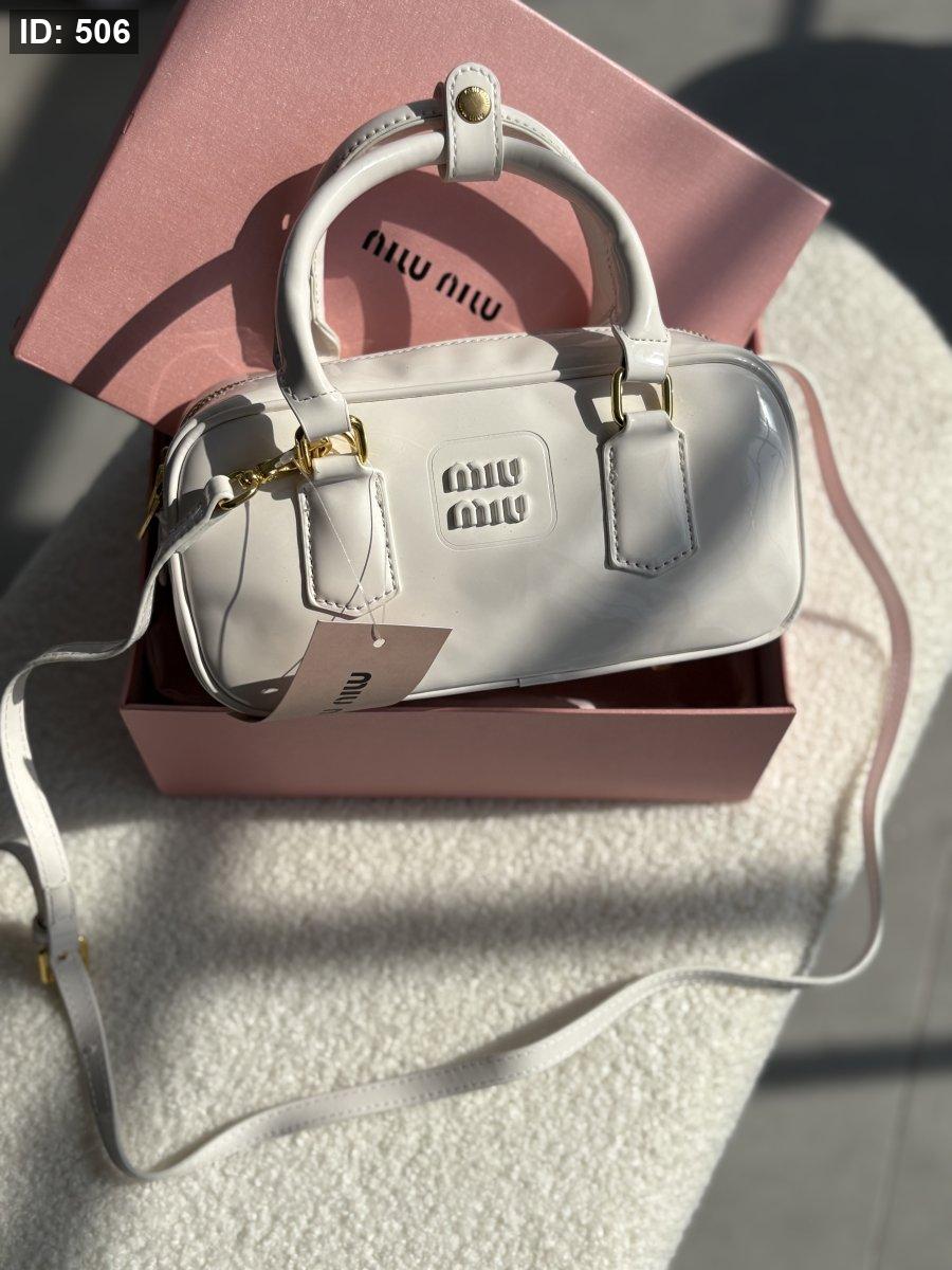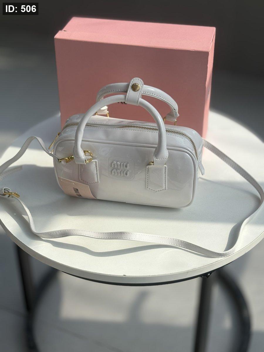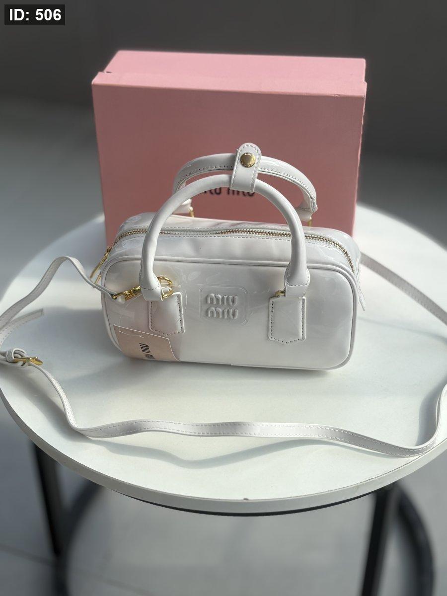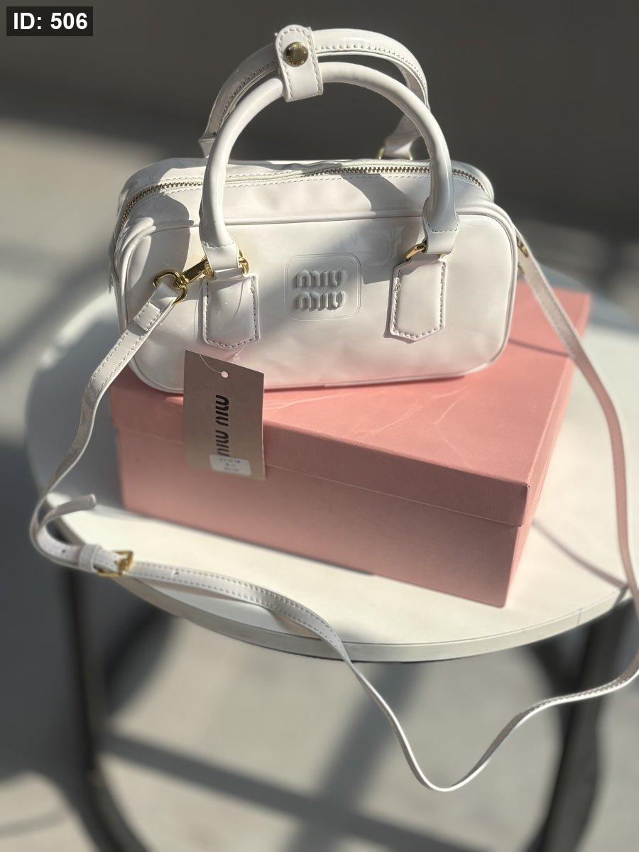 حقيبة ميو ميو لون أبيض لامع حجم وسط