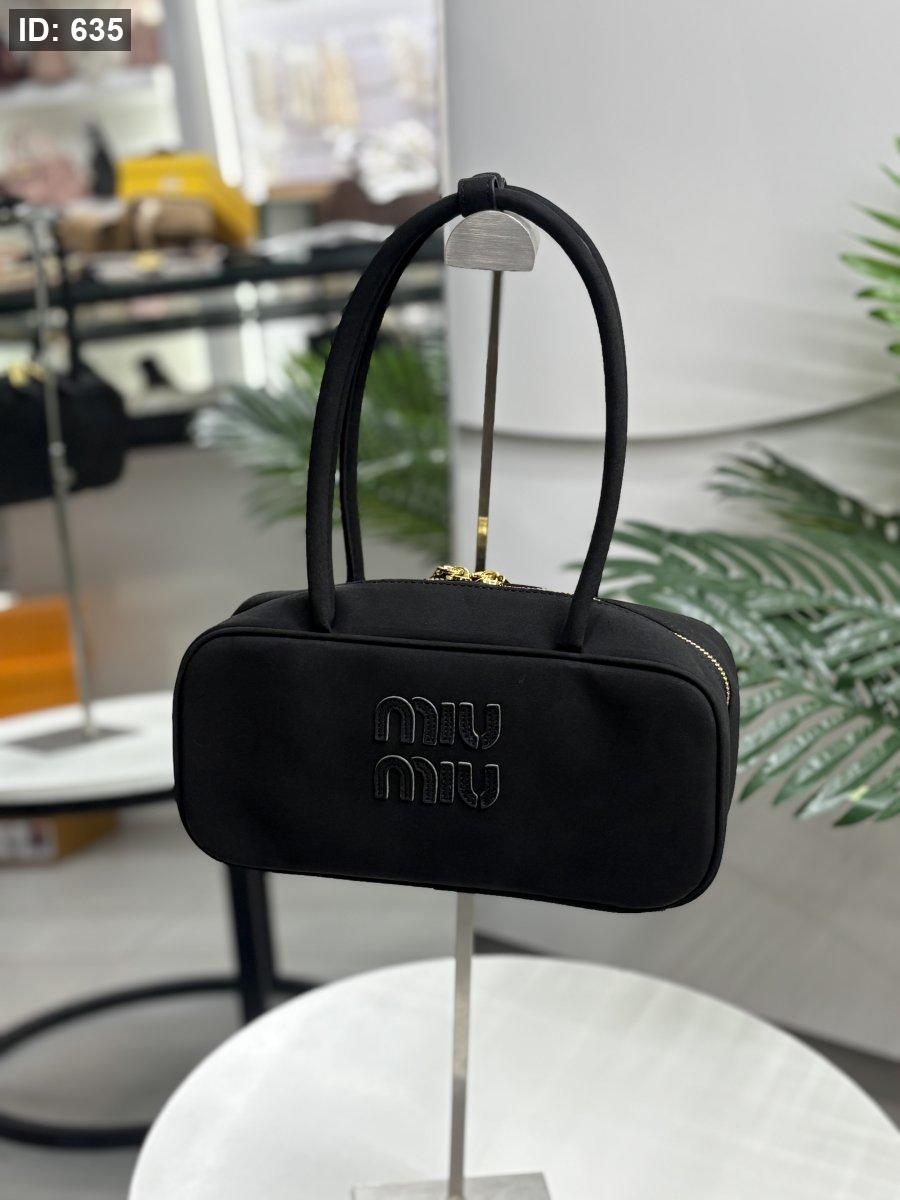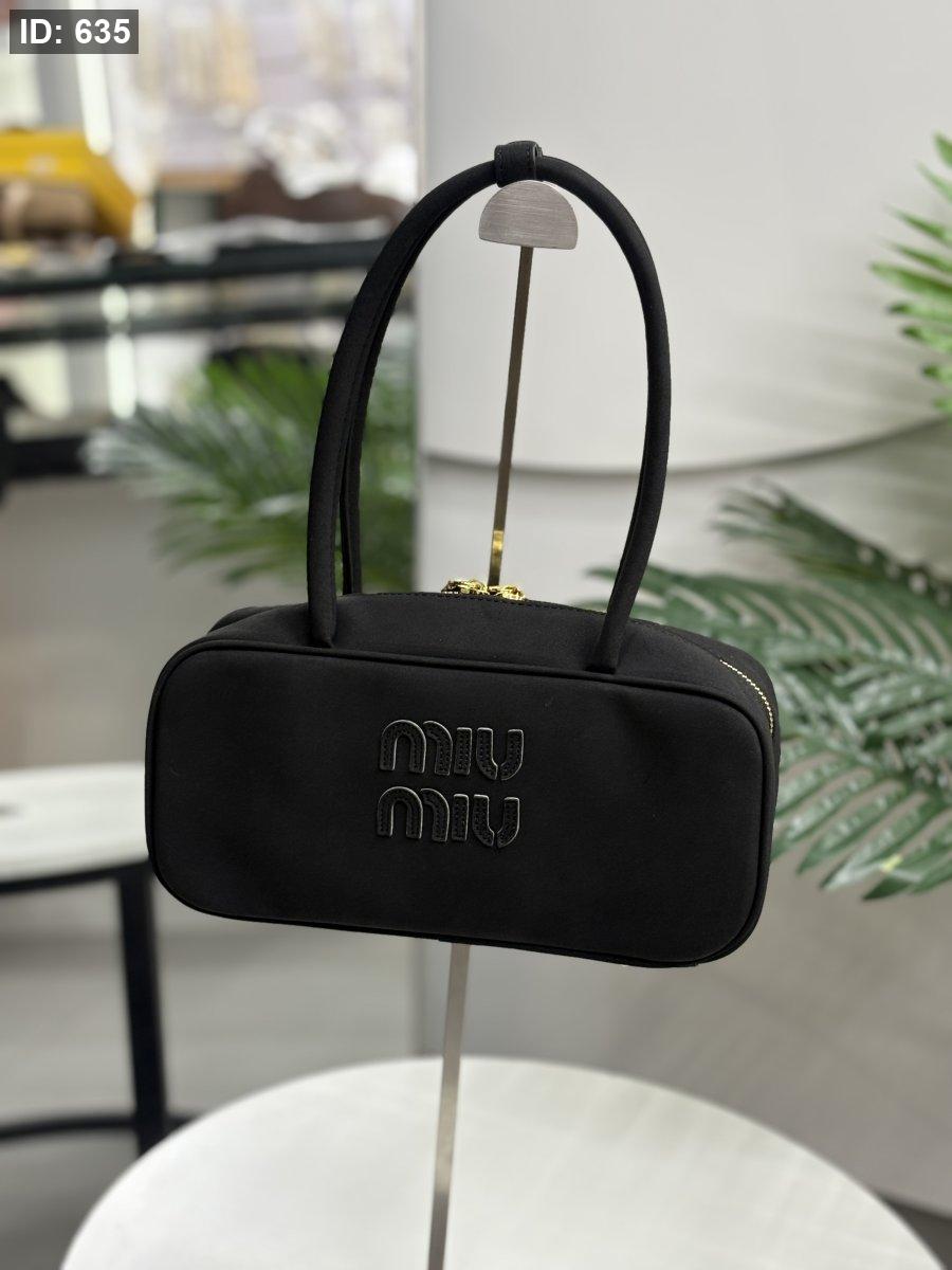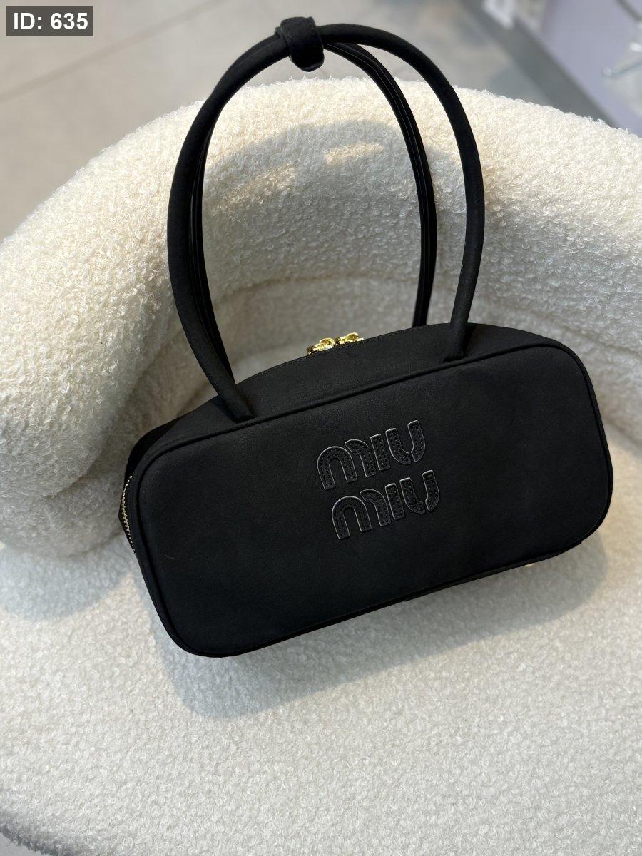 حقيبة ميو ميو لون اسود شمواه حجم القاعدة 25 سم