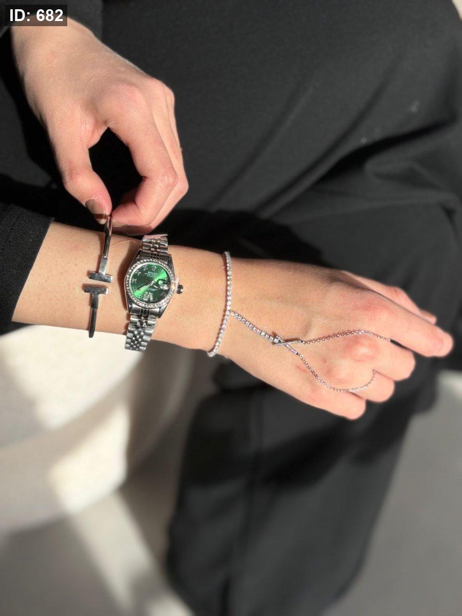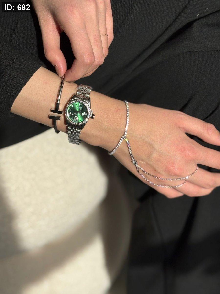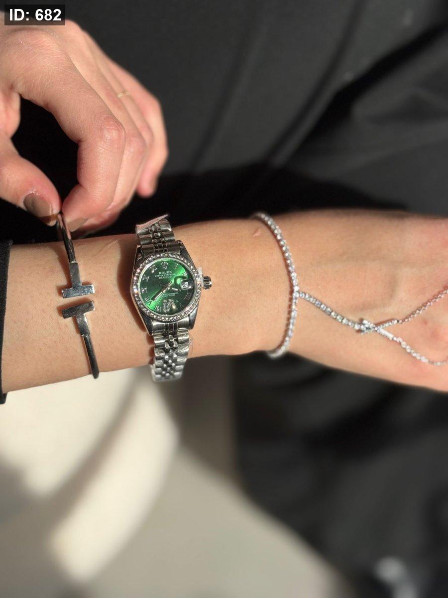 ساعه روليكس دائرتها صغيره وارضيتها لون اخضر