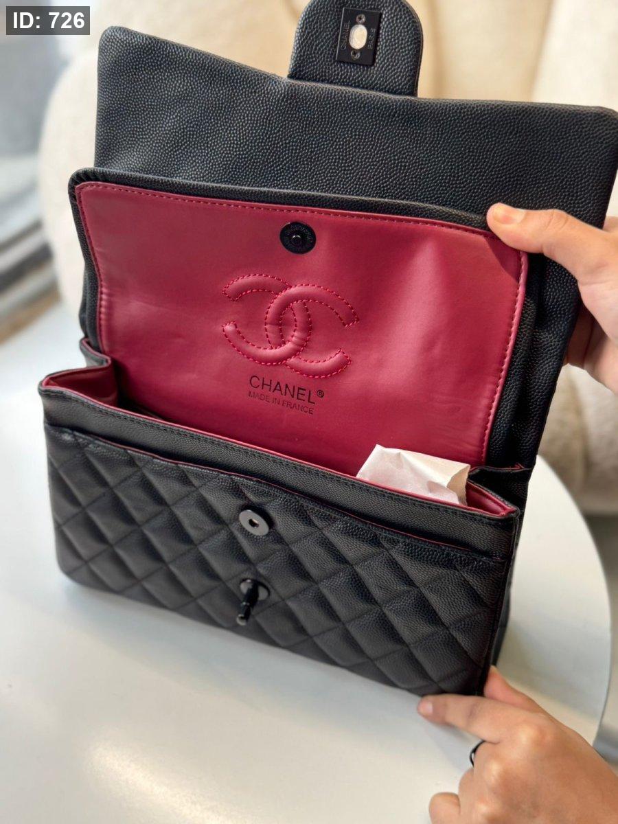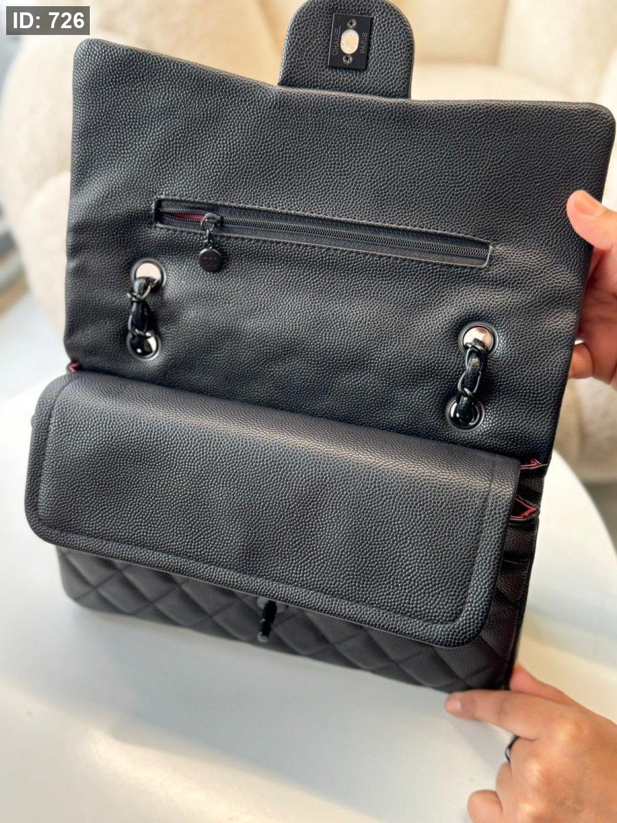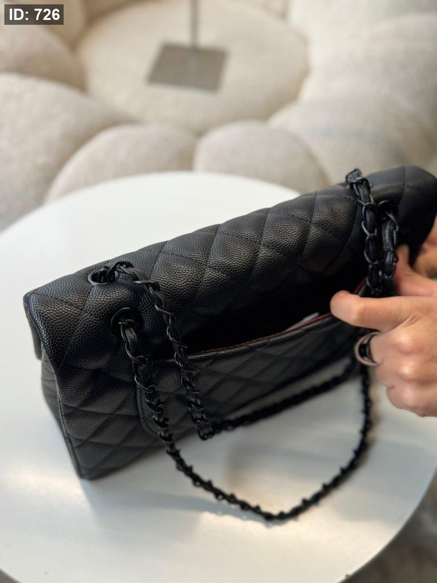 شانيل لون اسود هاردوير اسود جلد الكاڤيار جحم القاعدة 28 سم