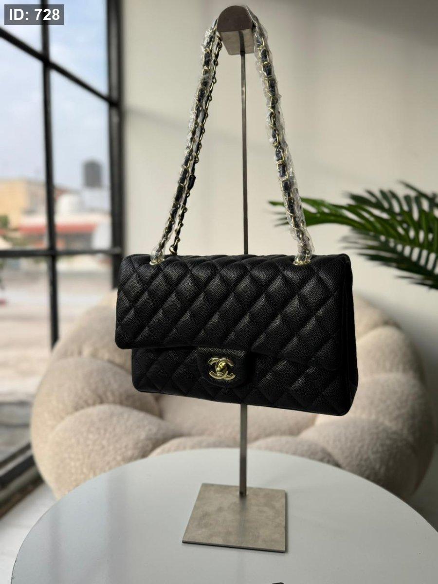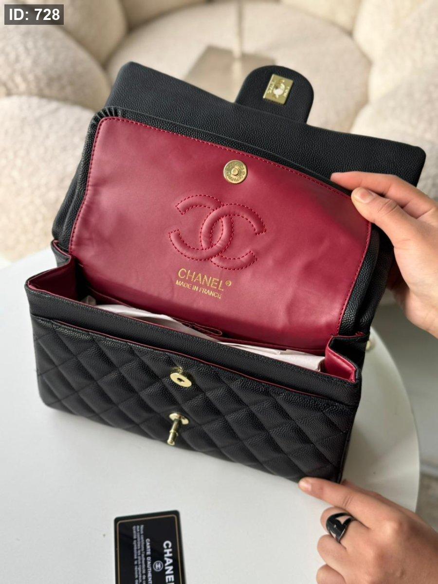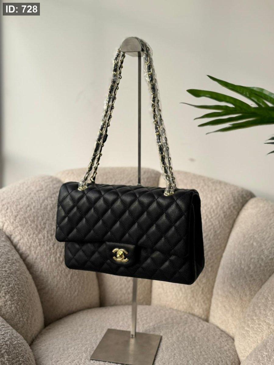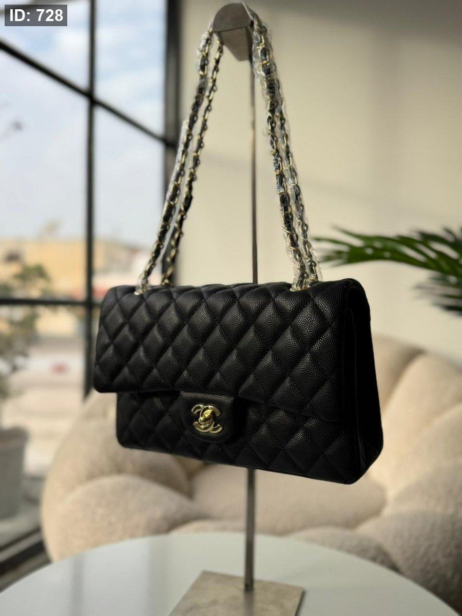 شانيل لون اسود هاردوير ذهبي جلد الكافيار حجم القاعدة 28 سم
