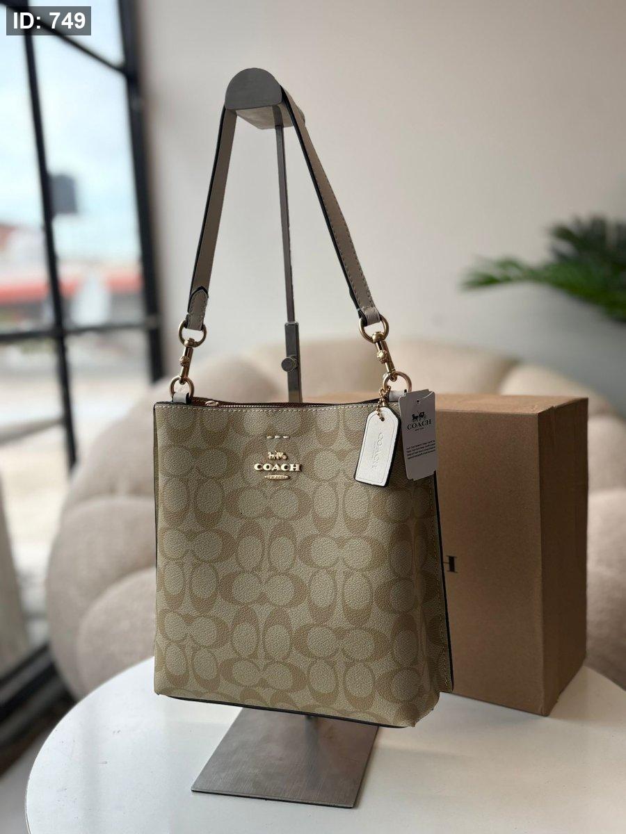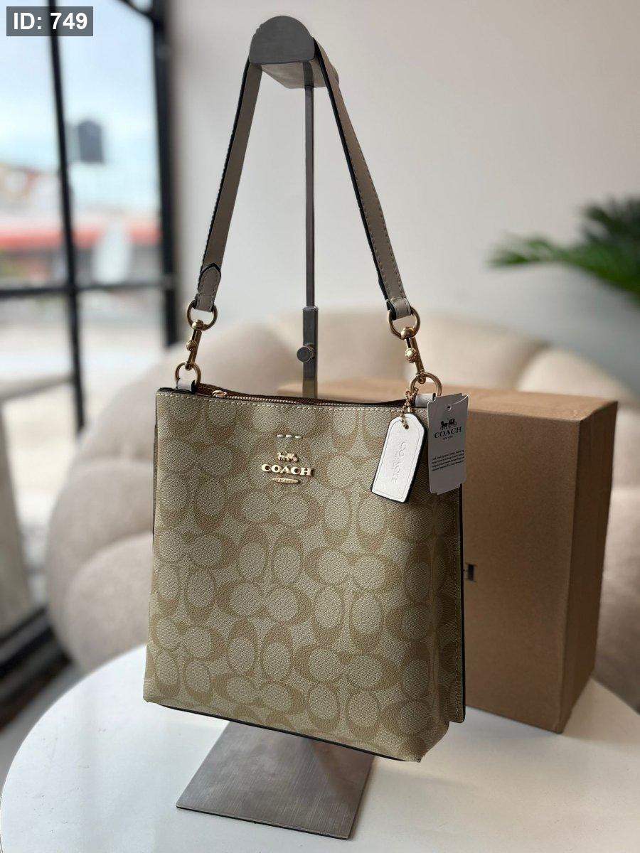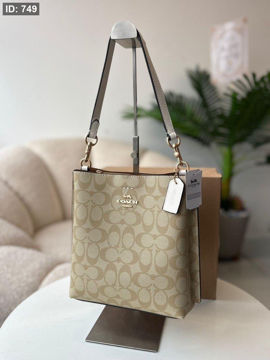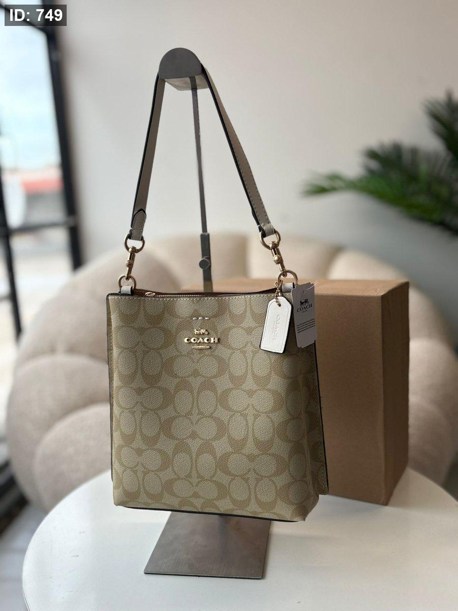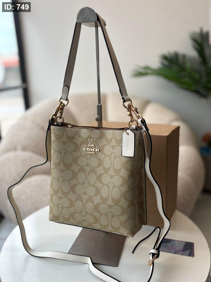 حقيبة كوتش طولي لون بيج والقشاط لون ابيض