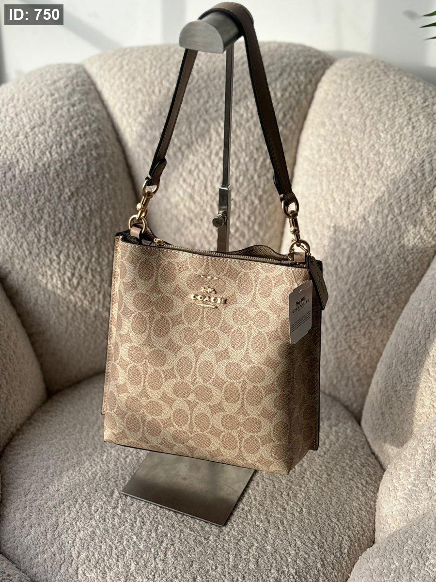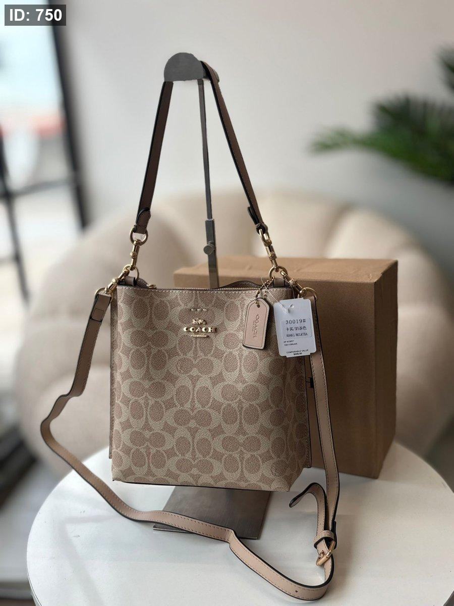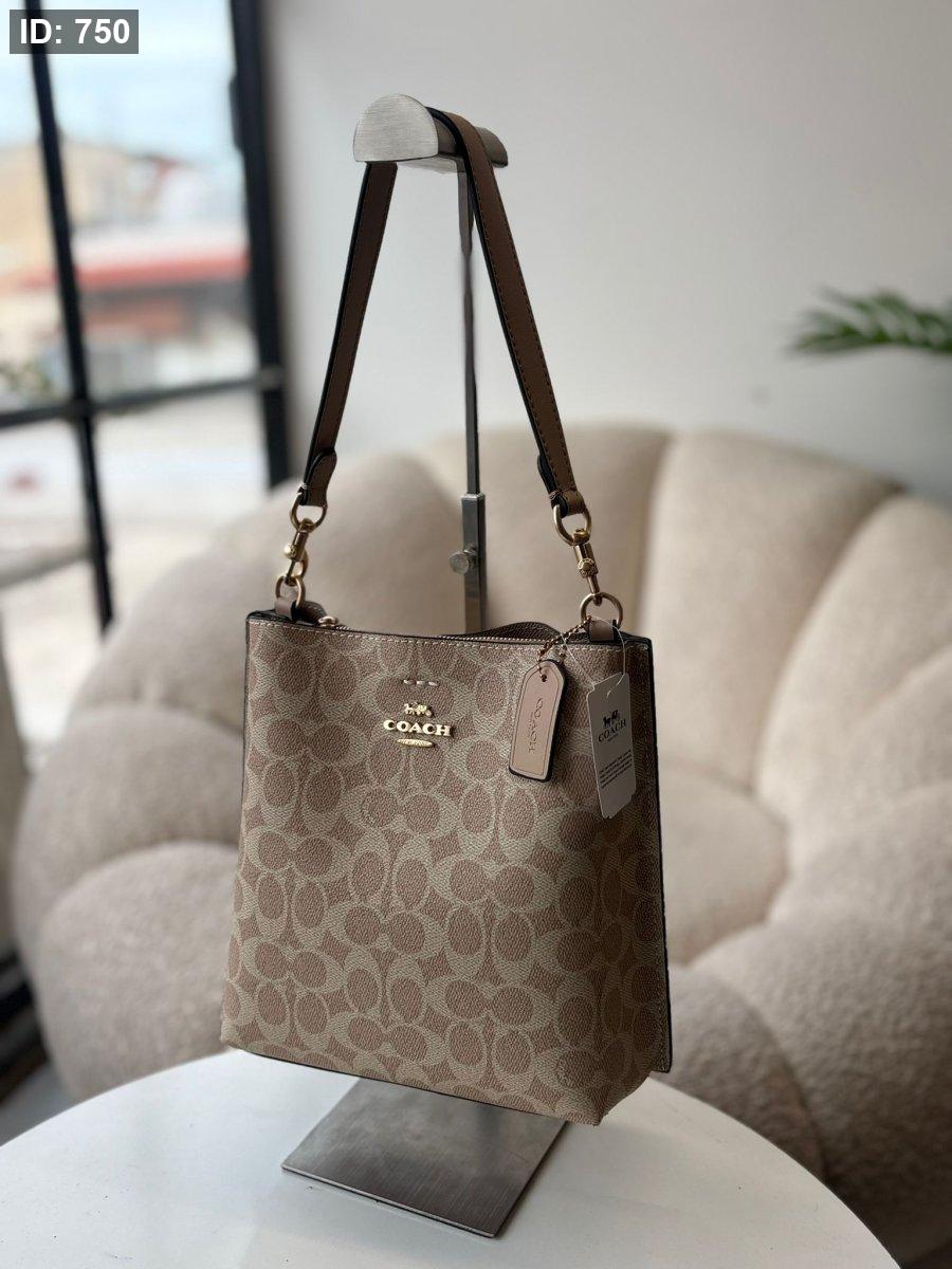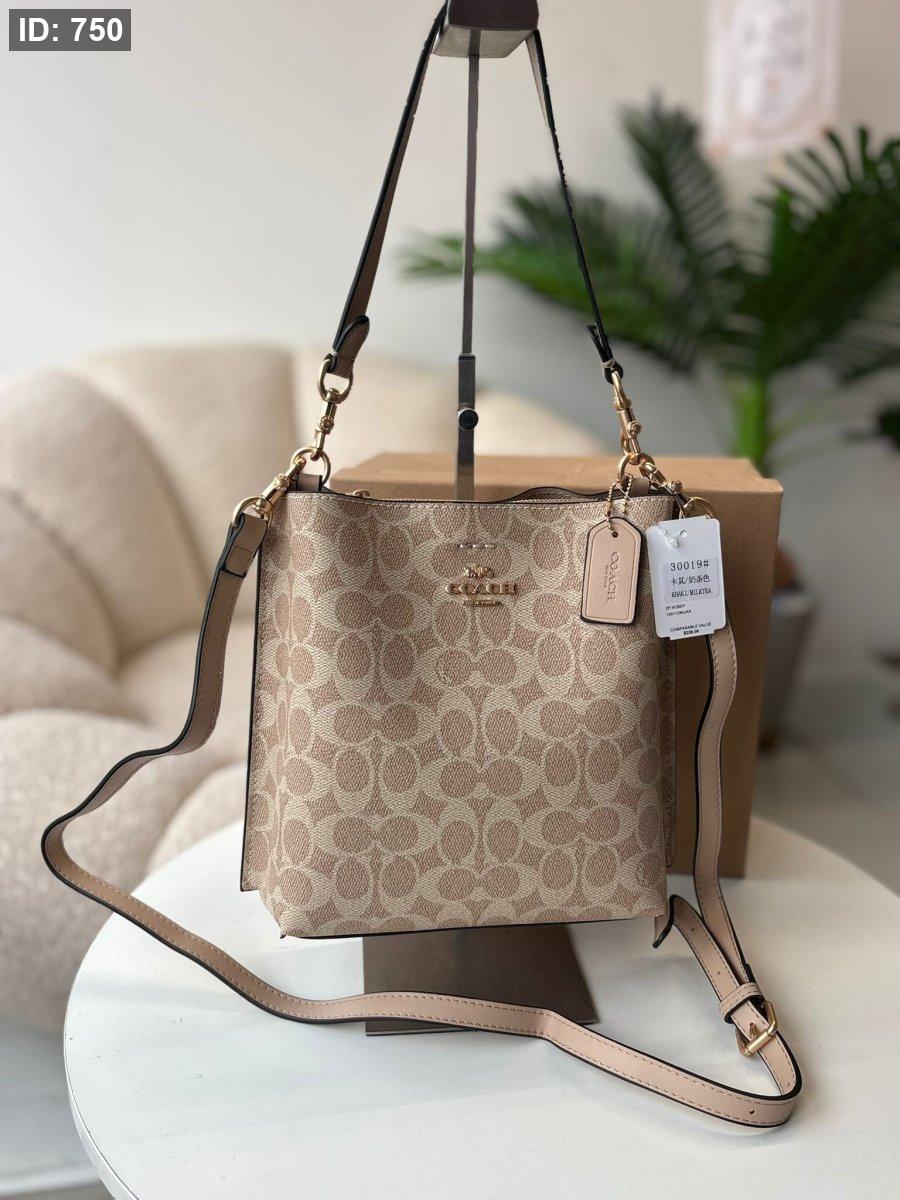 حقيبة كوتش طولي لون بيج وقشاط بيج