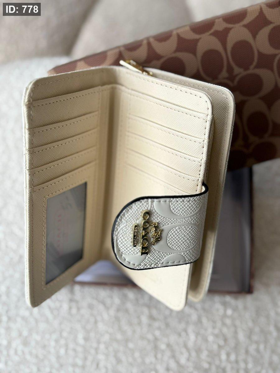 جزدان كوتش لون ابيض لامع بوسع بطاقات والهويه والعملات المعدنيه والورقيه