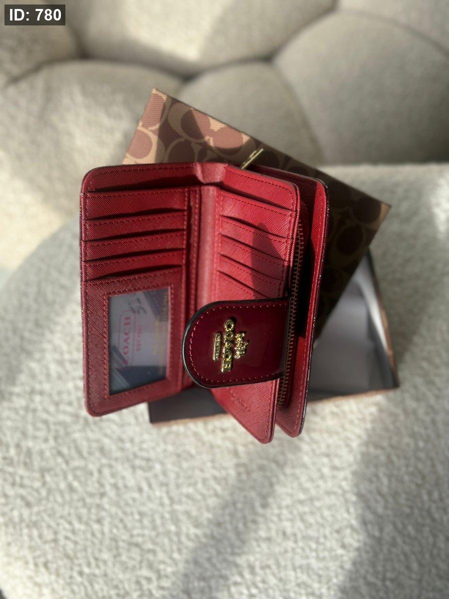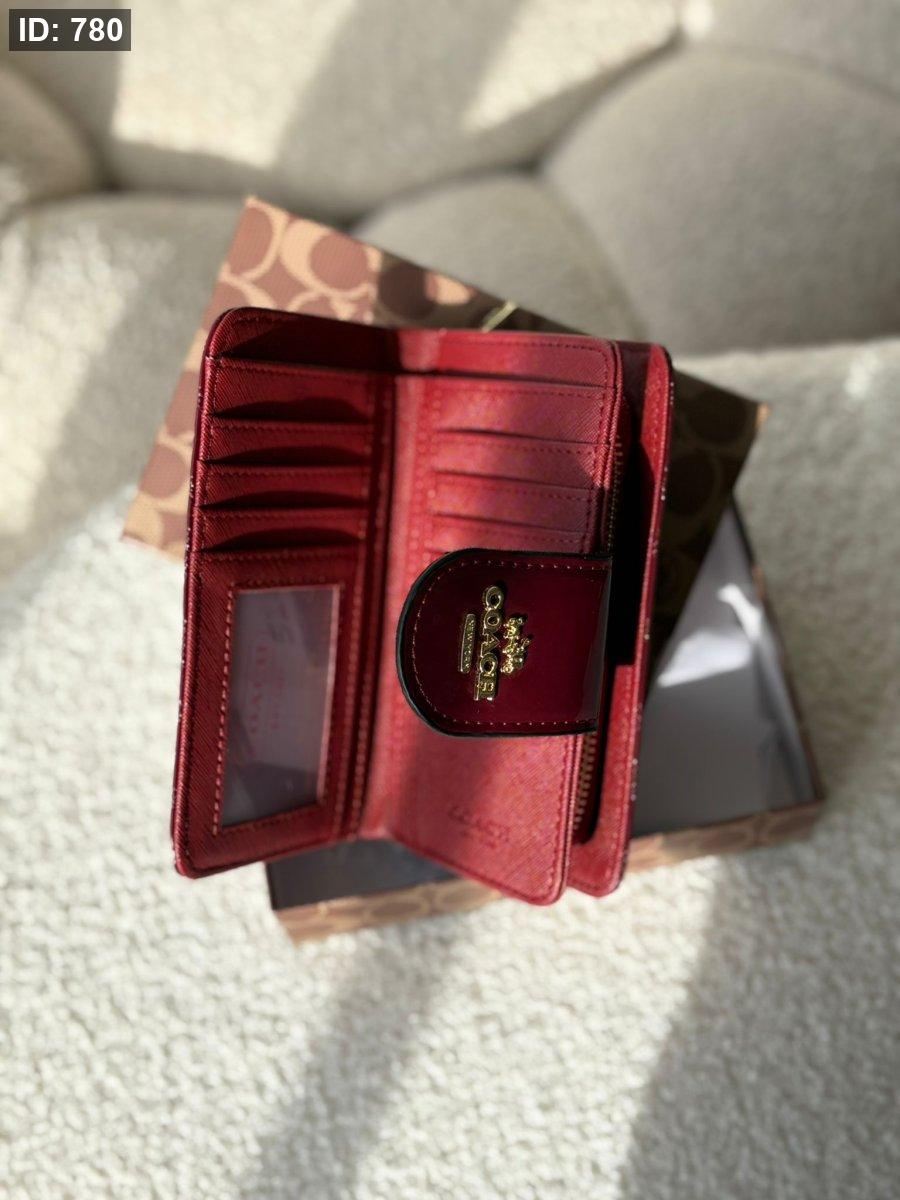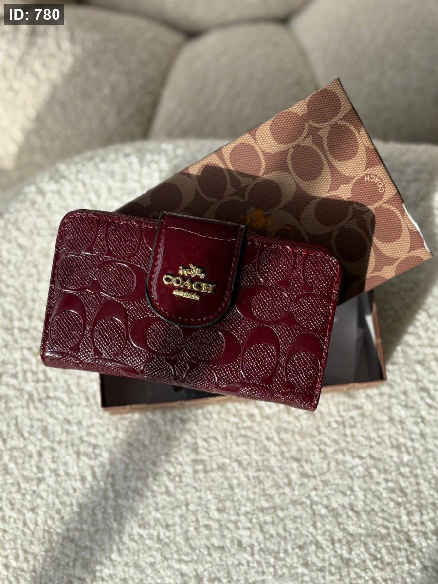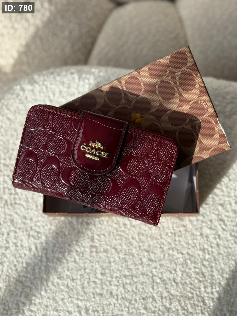 جزدان كوتش لون برغندي لامع بوسع بطاقات والهويه والعملات المعدنيه والورقيه