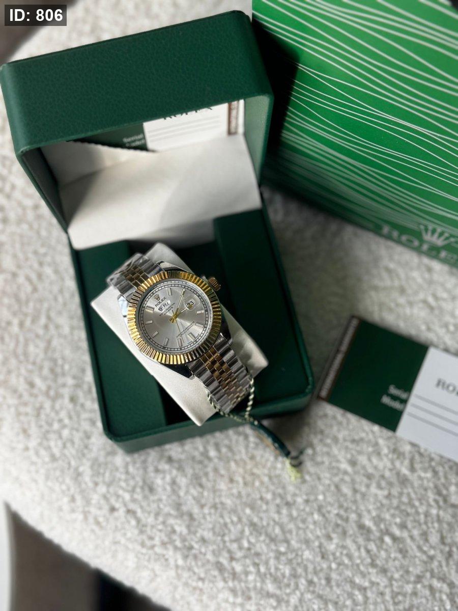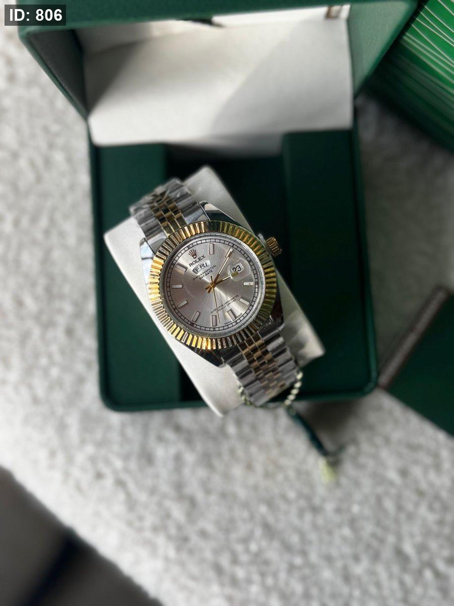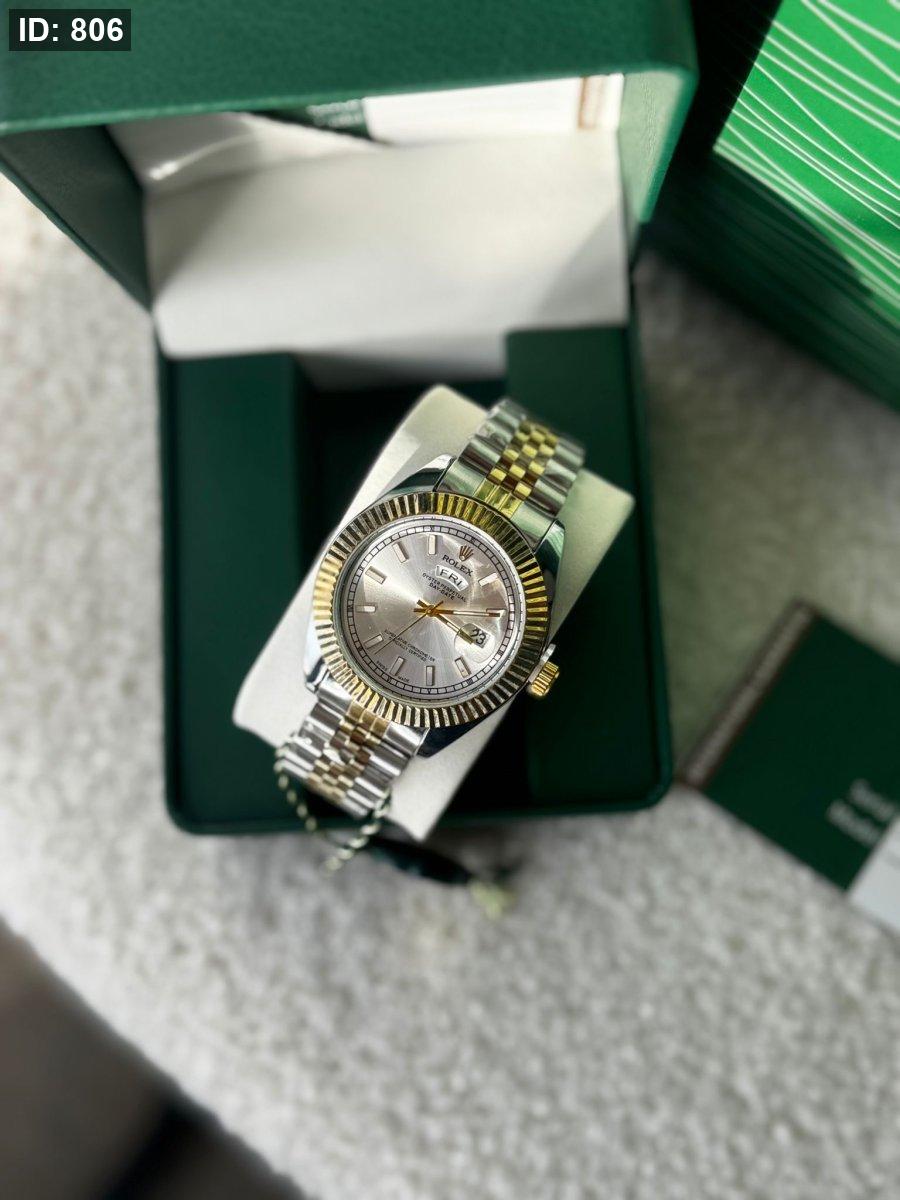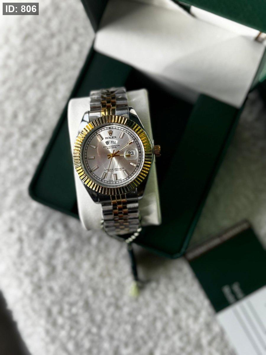 ساعة رولكس رجالي ارضية ابيض الهاردوير مكس بين الذهبي والسلفر