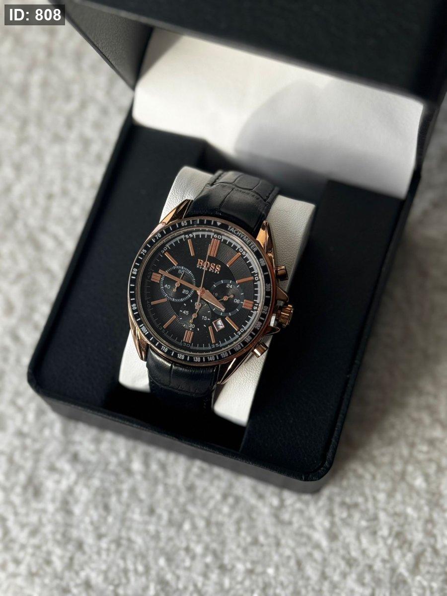 ساعة Boss رجالي ارضية اسود الهاردوير جلد اسود