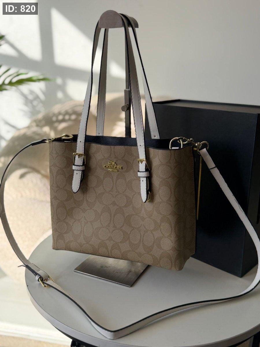 حقيبة كوتش مربع لون بيج وابيض