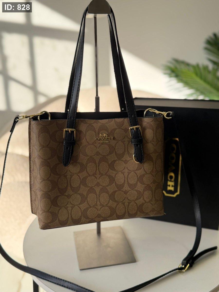 حقيبة كوتش مربع لون بيج غامق واسود