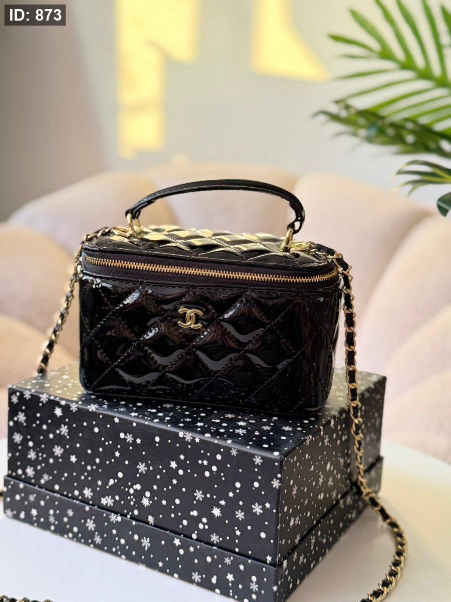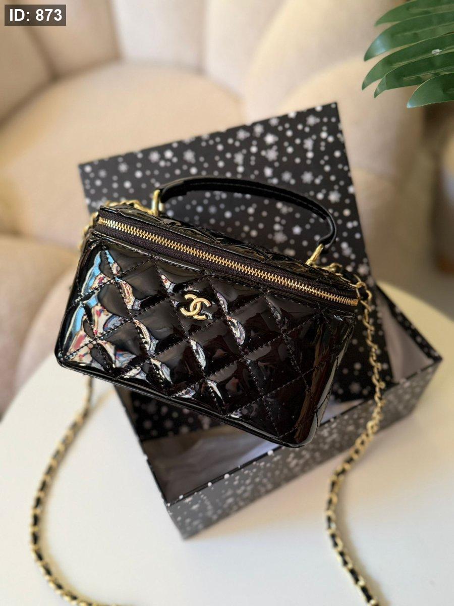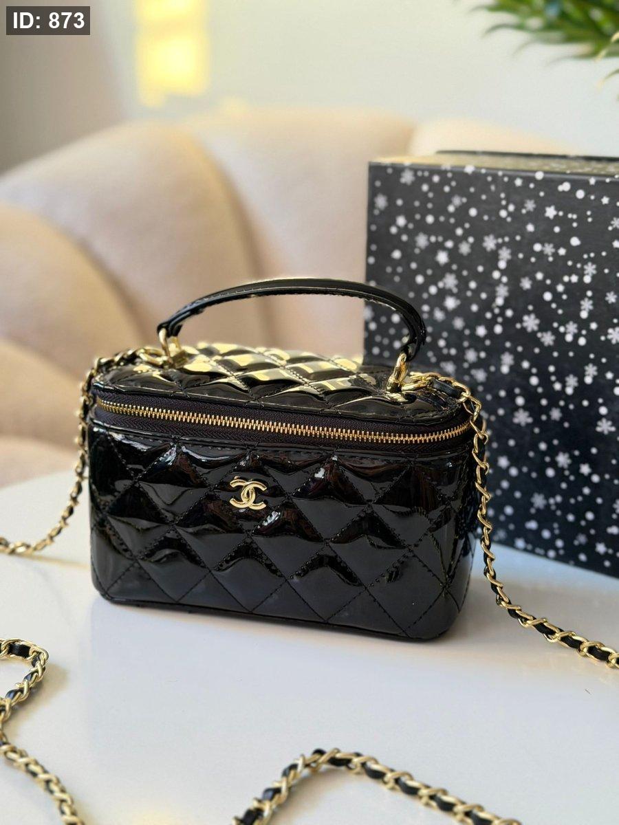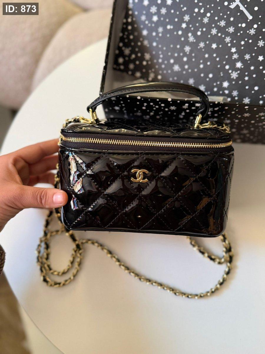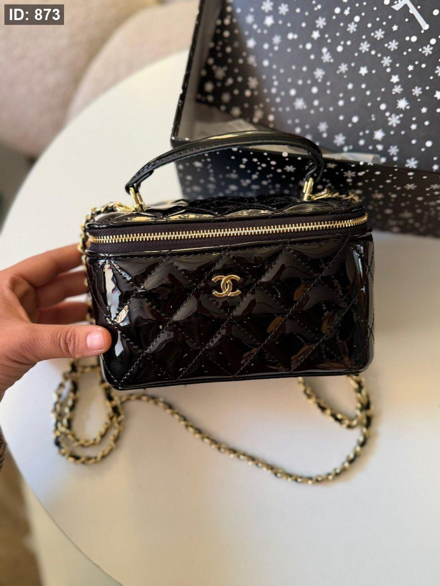 حقيبة شانيل لون اسود لامع حجم القاعدة ١٧ سم