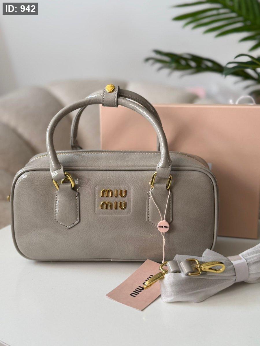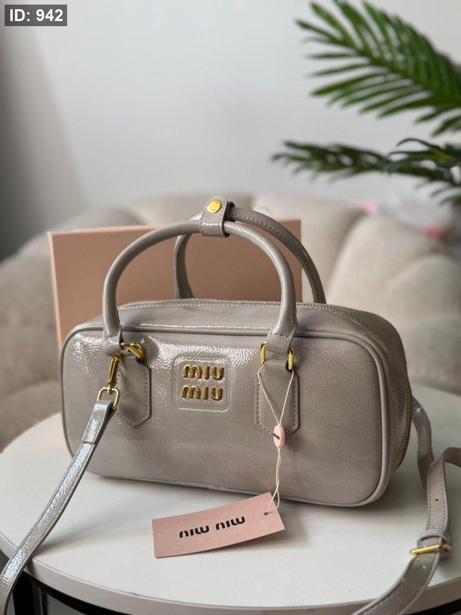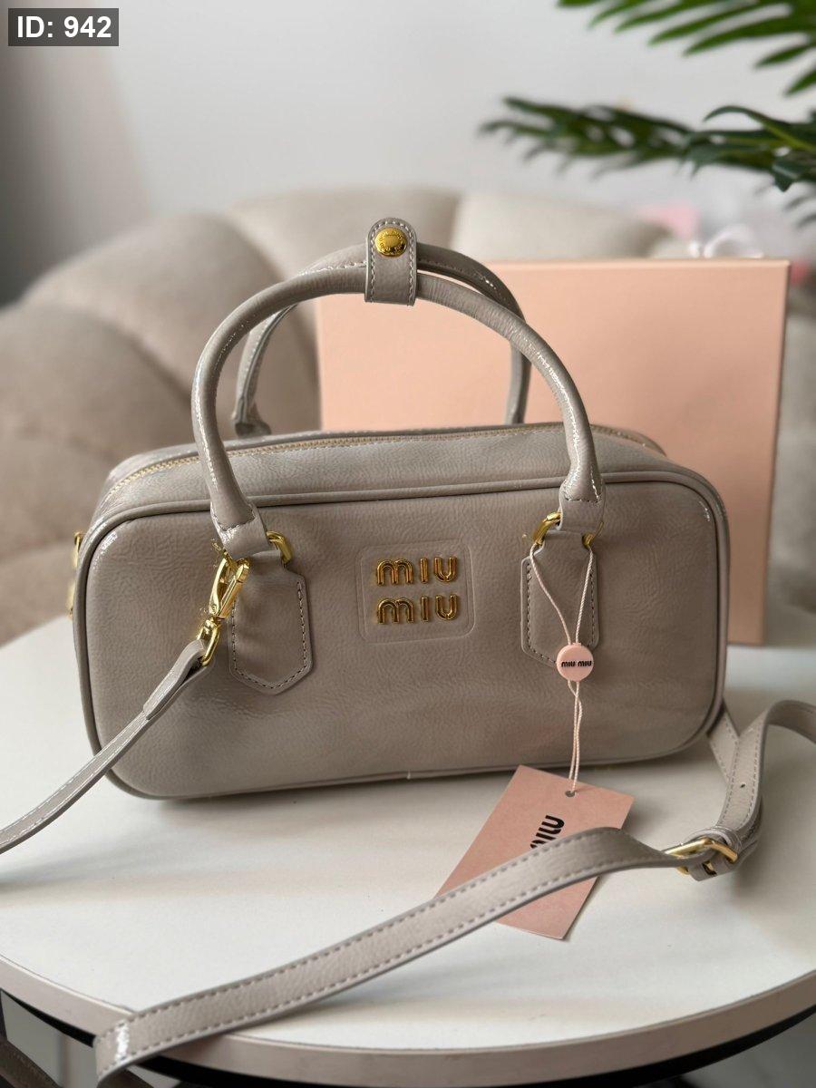 حقيبه ميو ميو مربع لون رمادي لامع حجم كبير