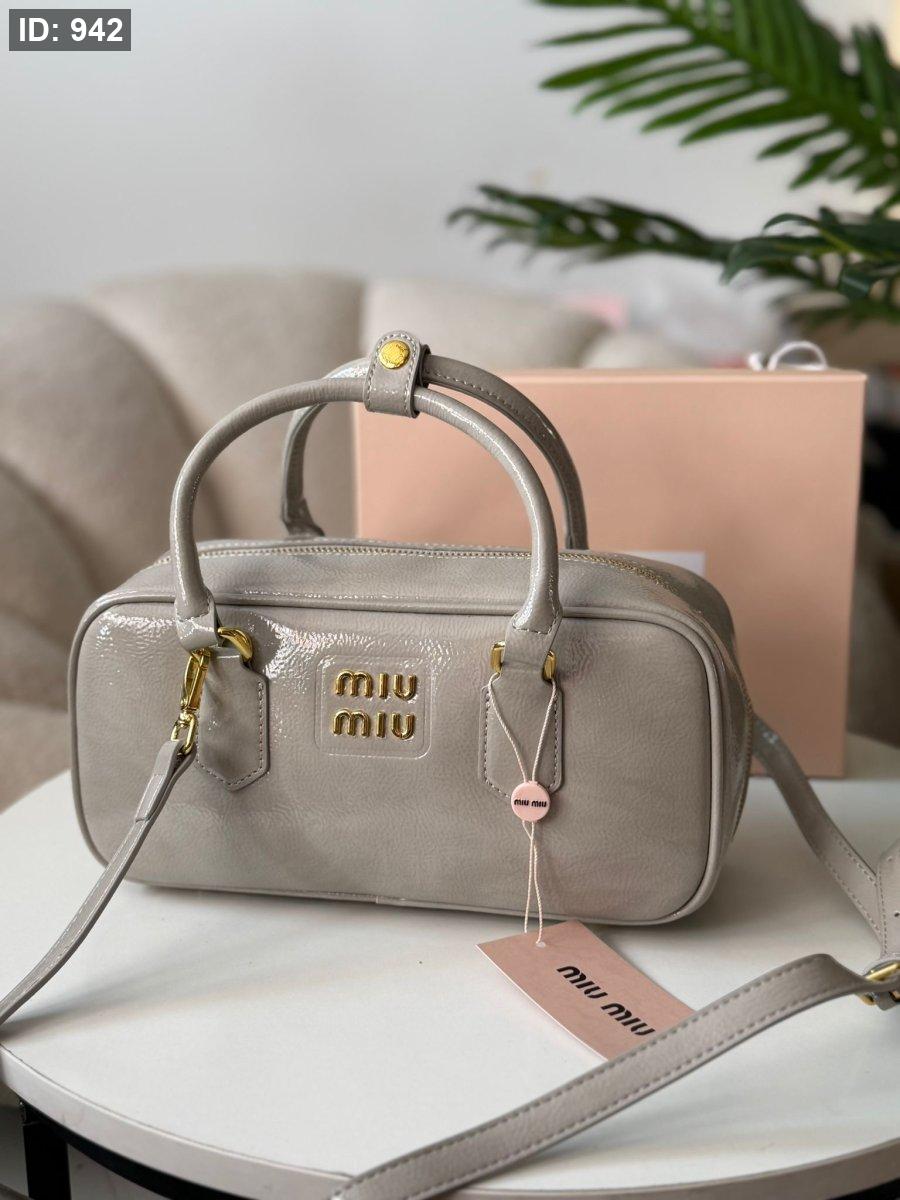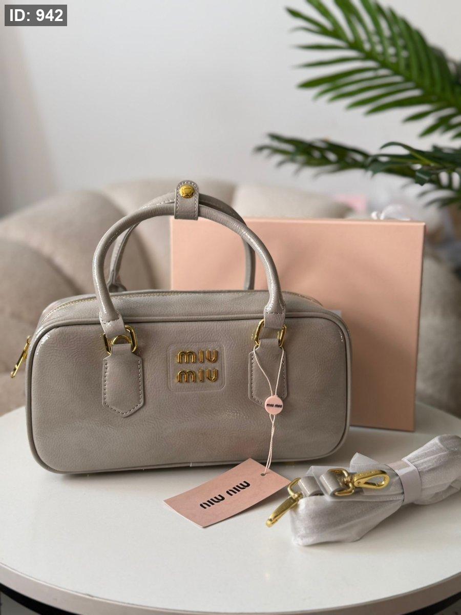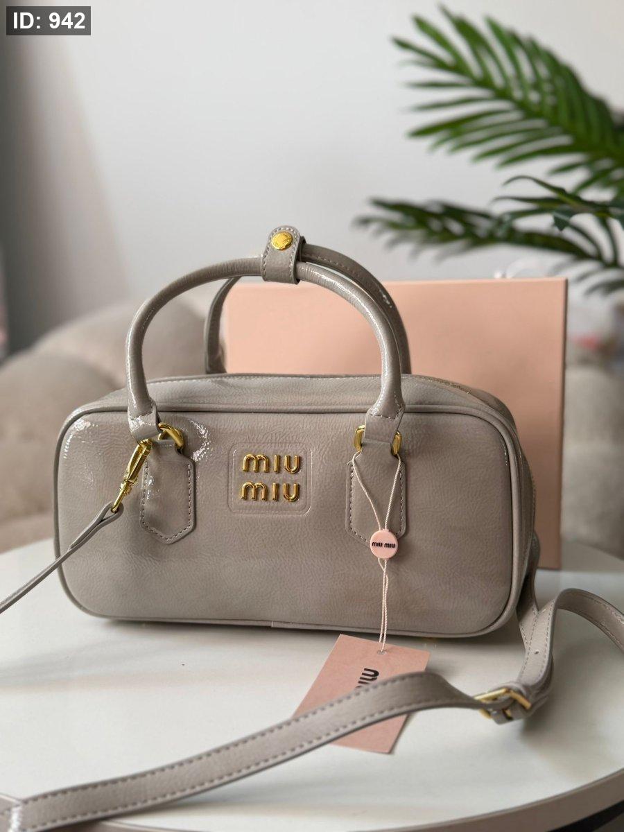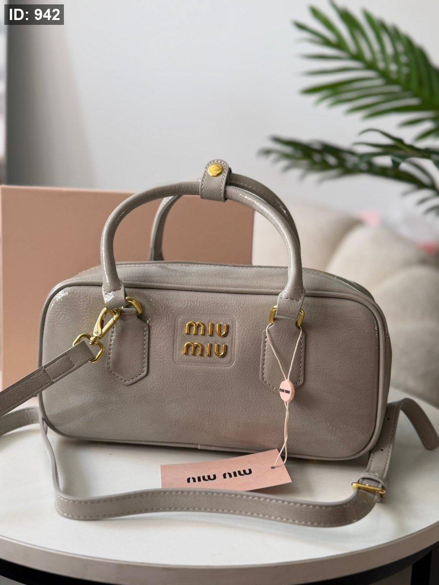 حقيبه ميو ميو مربع لون رمادي لامع حجم كبير