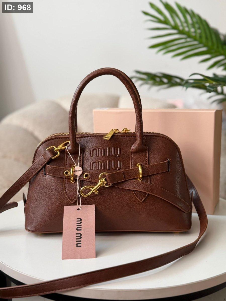 حقيبه ميو ميو حجم القاعده 29 سم لون عسلي
