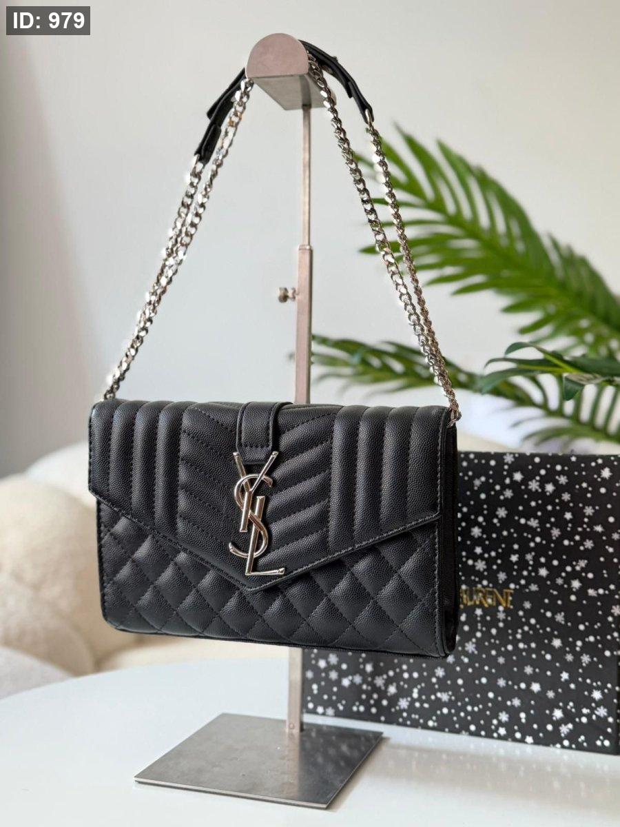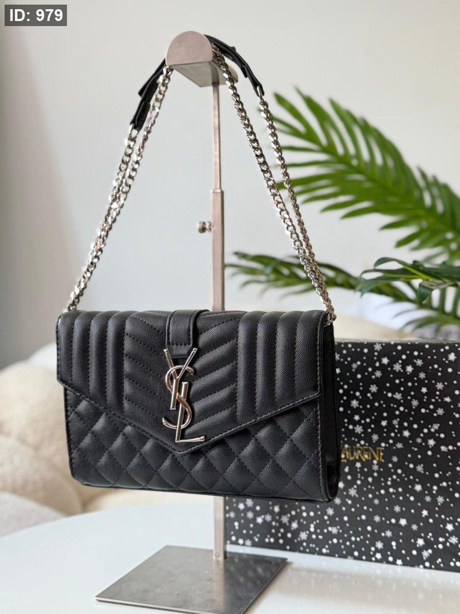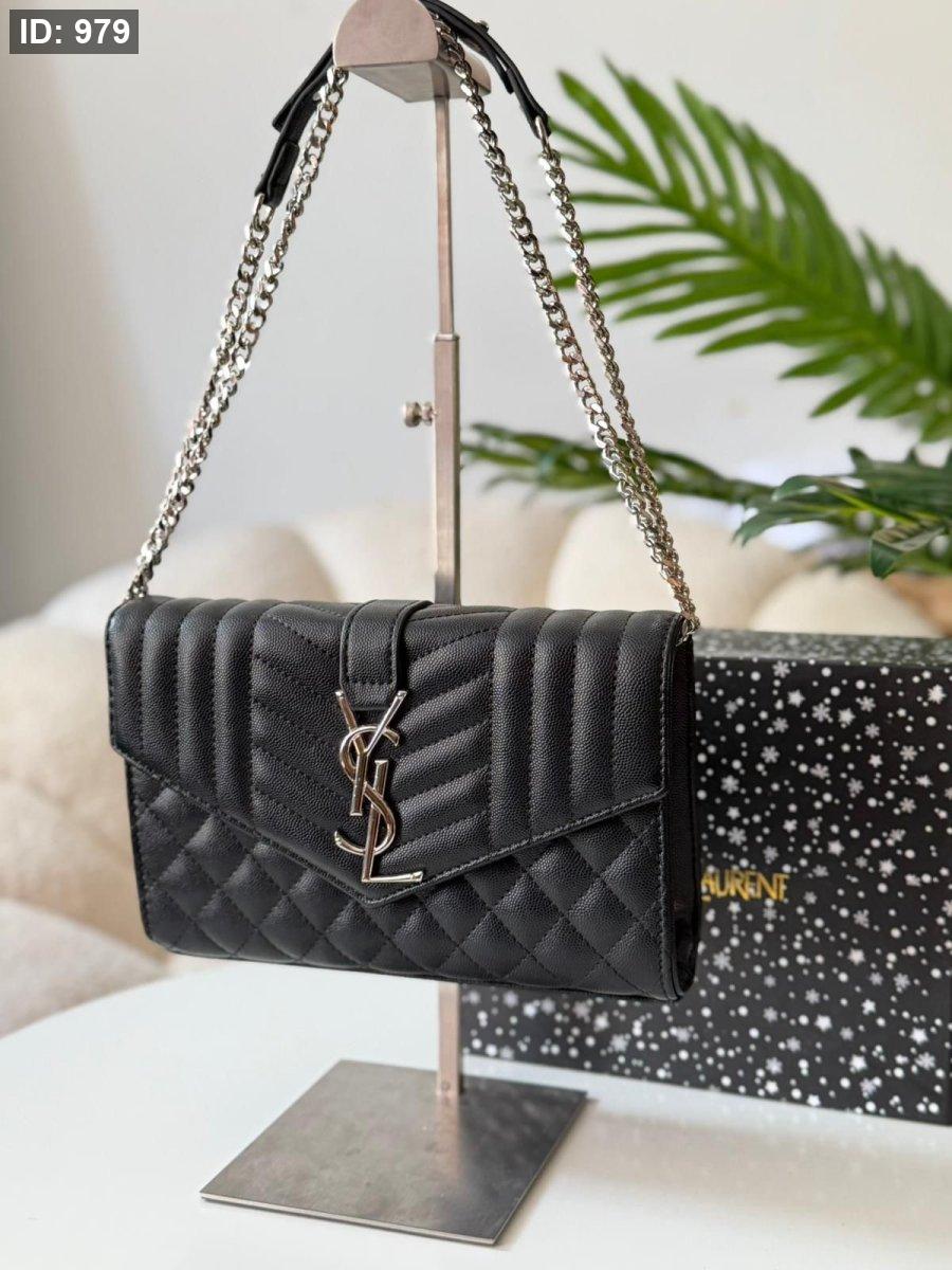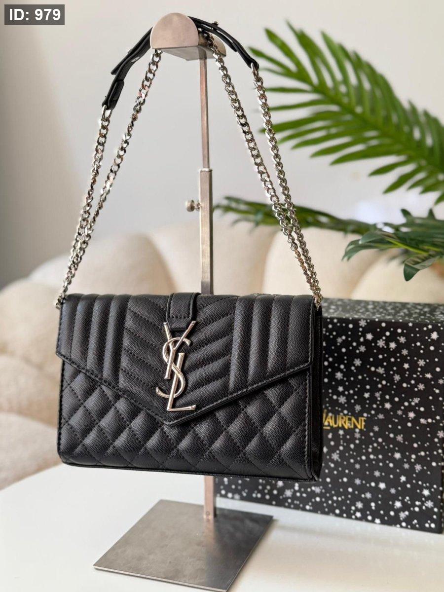 حقيبة سان لوران لون اسود هاردوير سلفر حجم القاعدة 23