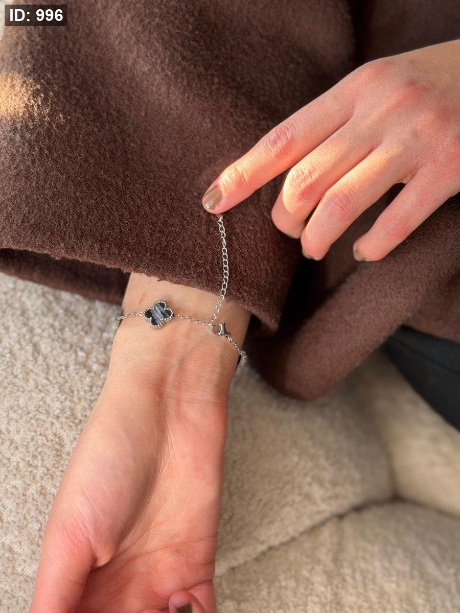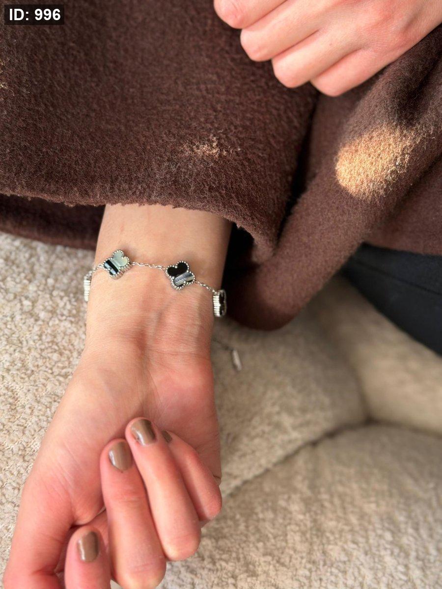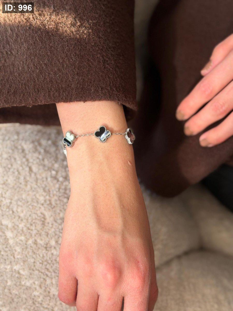 اسوارة فان كليف لون ابيض واسود سلسال سلفر مكفوله اللون